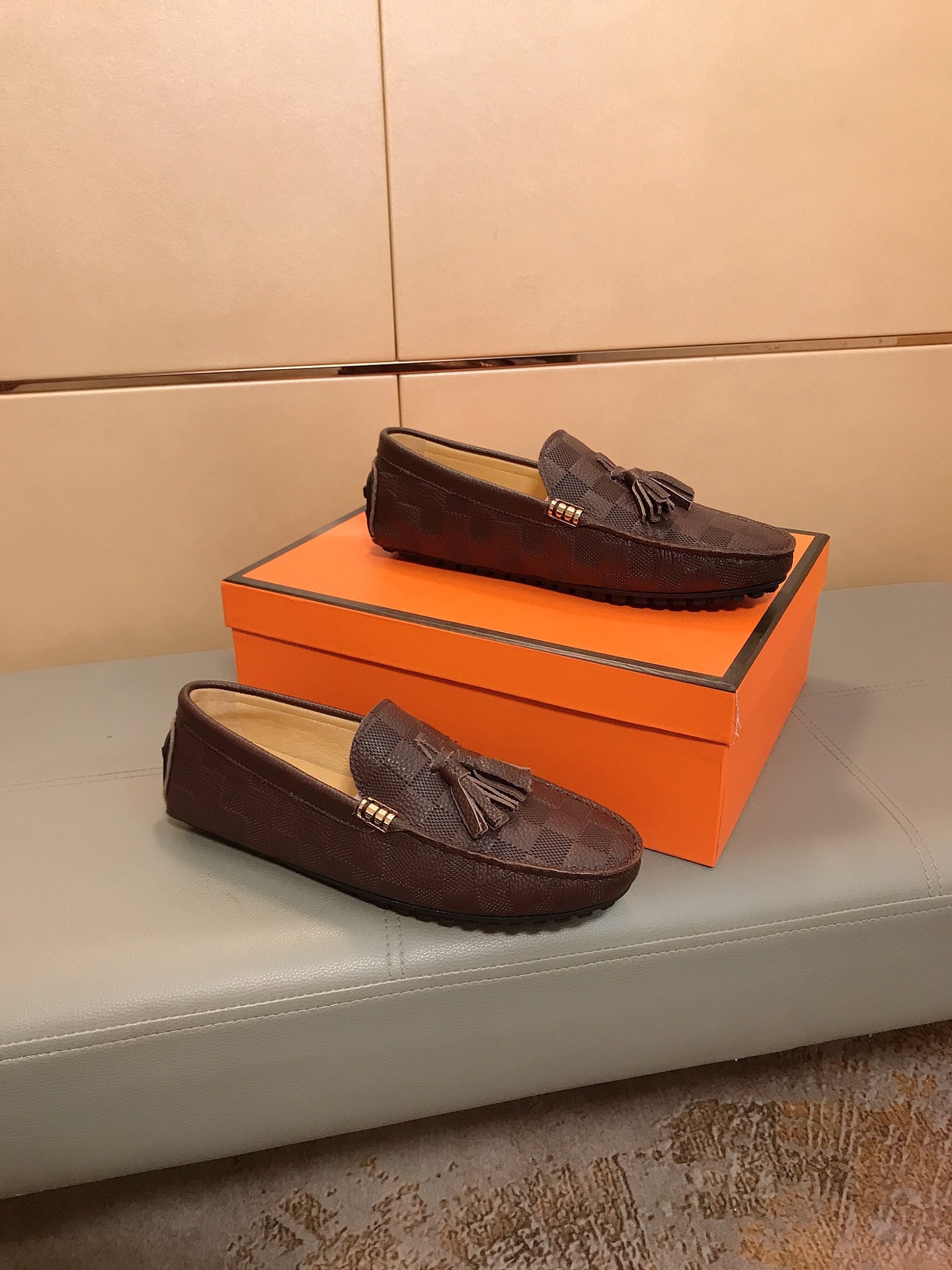LV LOAFERS RUSSET BROWN DAMIER CALFSKIN WITH TASSEL