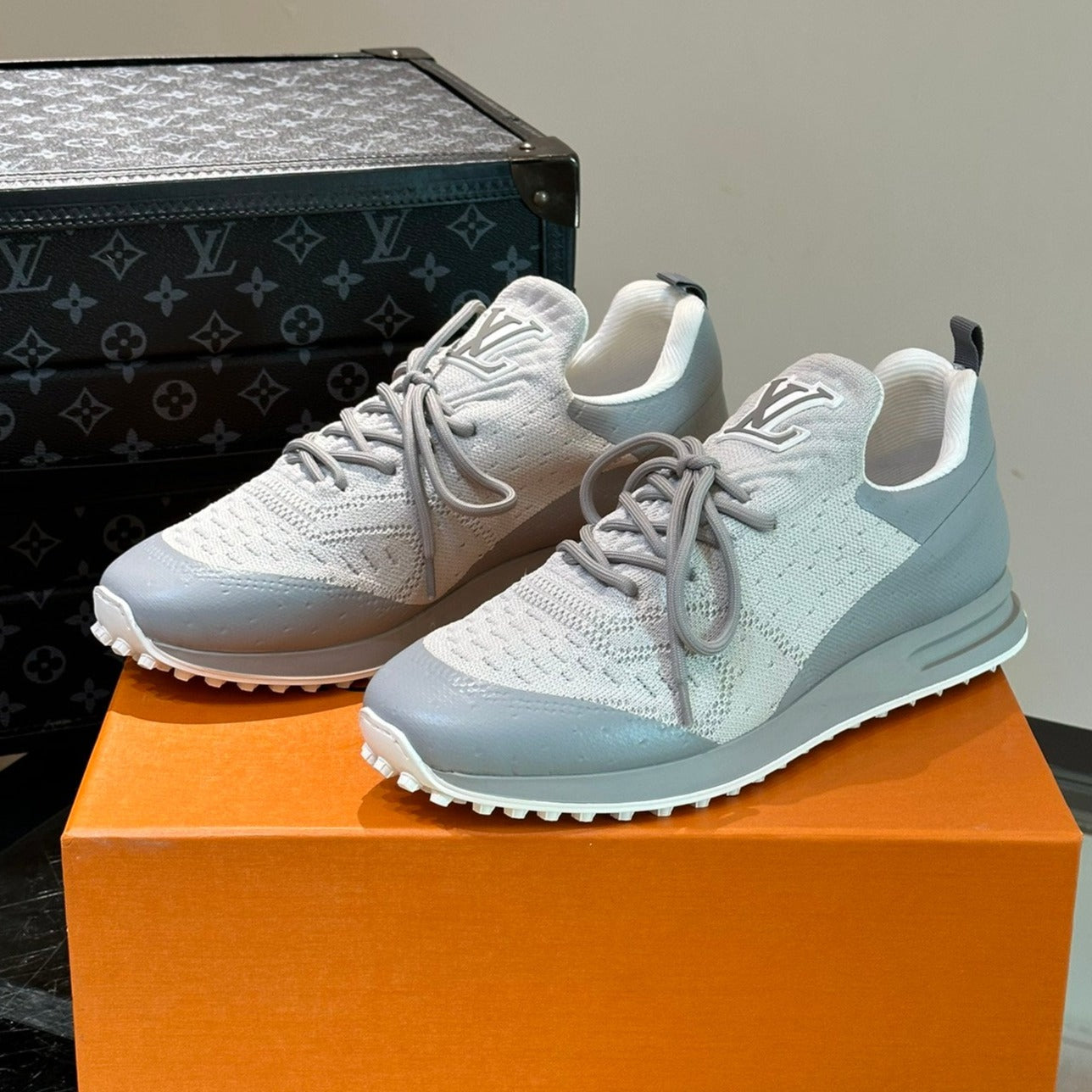 LV SNEAKERS IN GREY MIX WHITE CALFSKIN AND FABRIC BREATHABLE