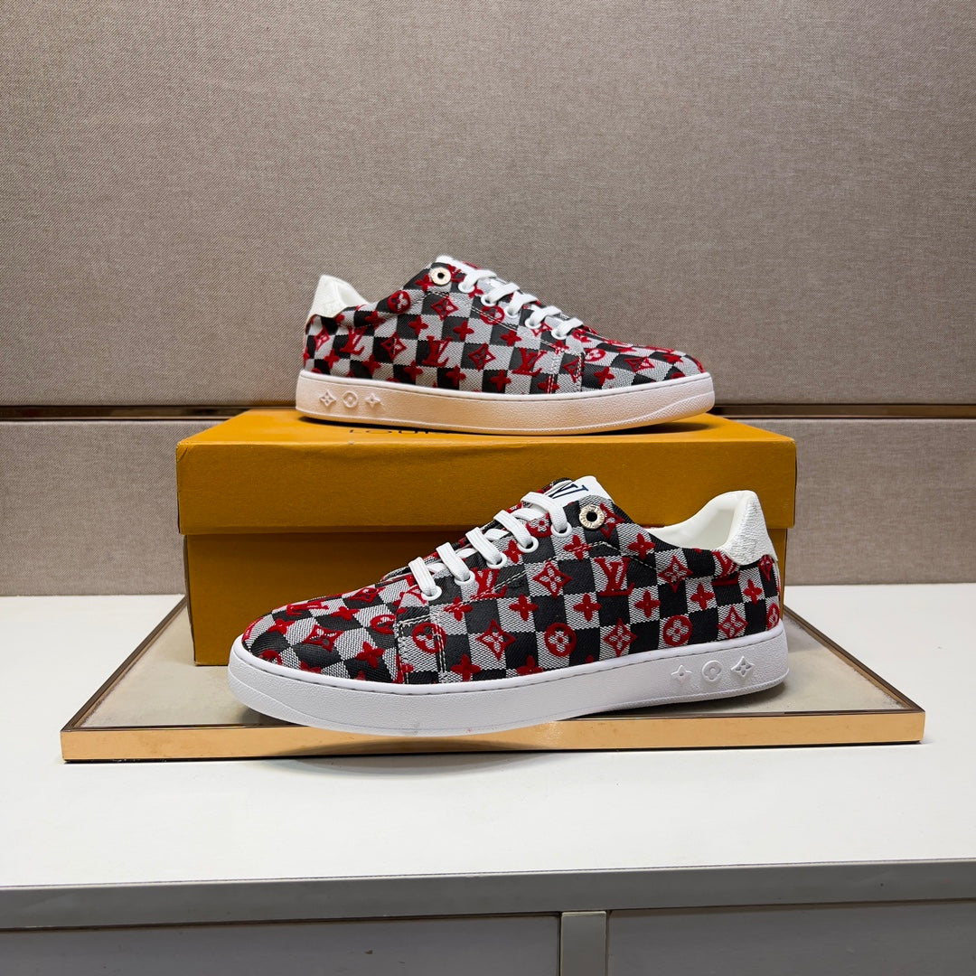 LV TRAINER BLACK MIX RED AND GREY DAMIER BREATHABLE FABRIC
