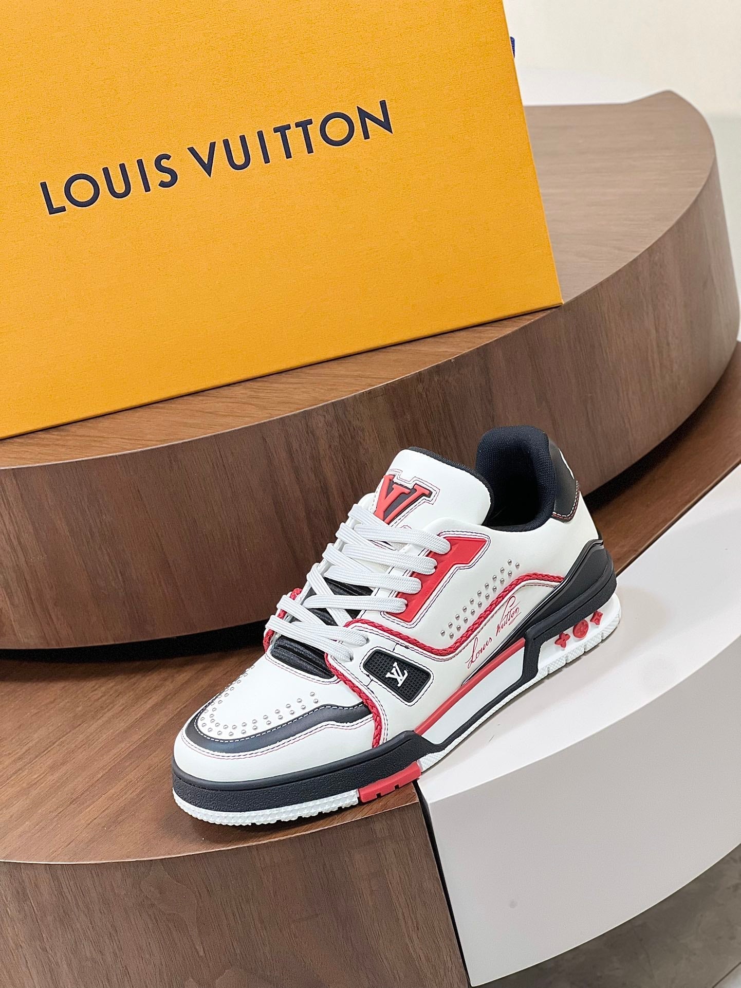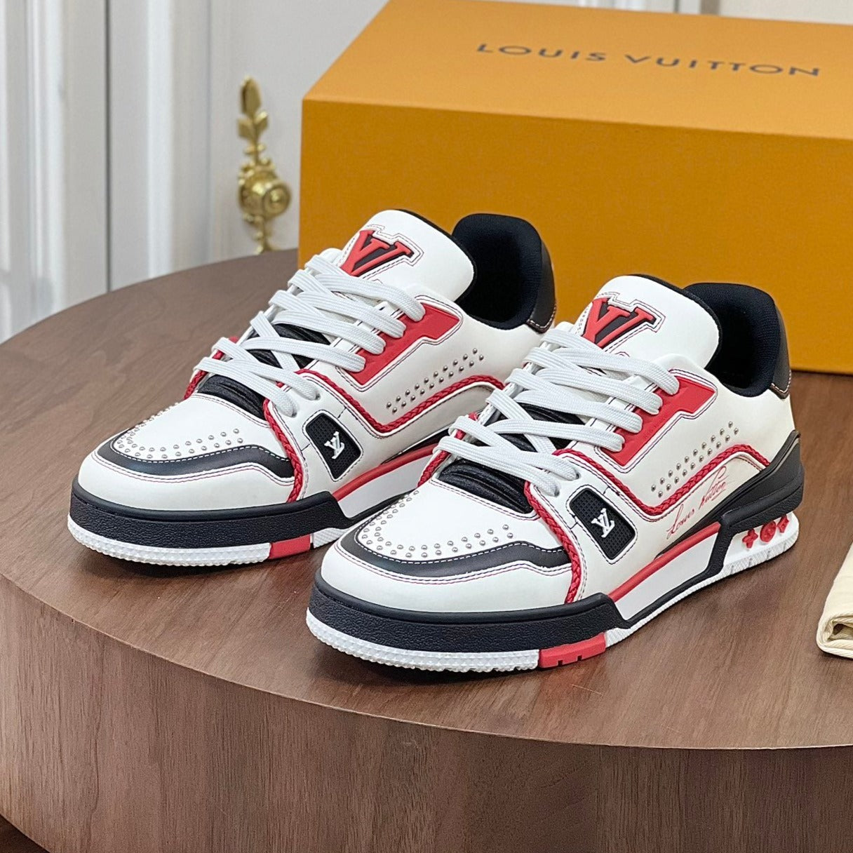 LV TRAINER WHITE MIX BLACK AND RED MONOGRAM CALFSKIN