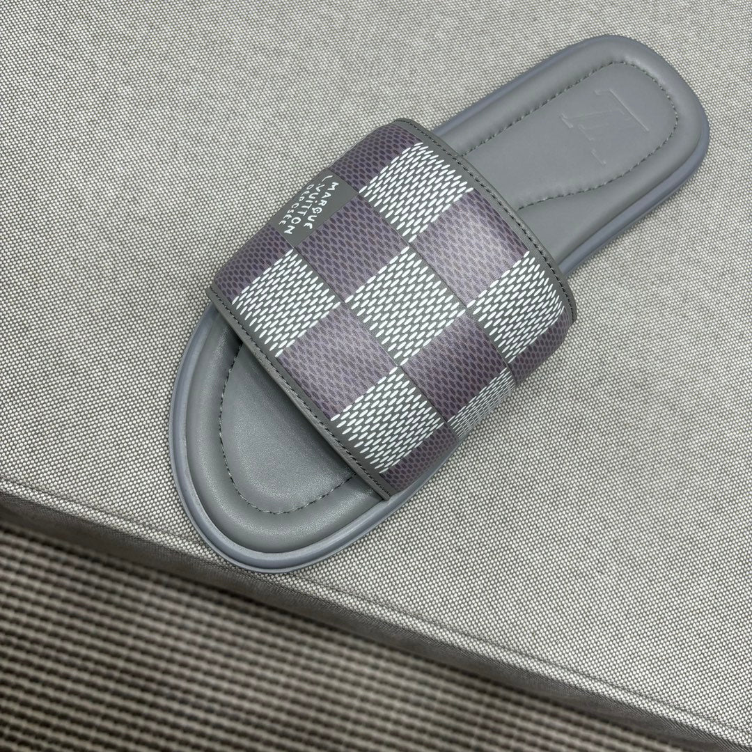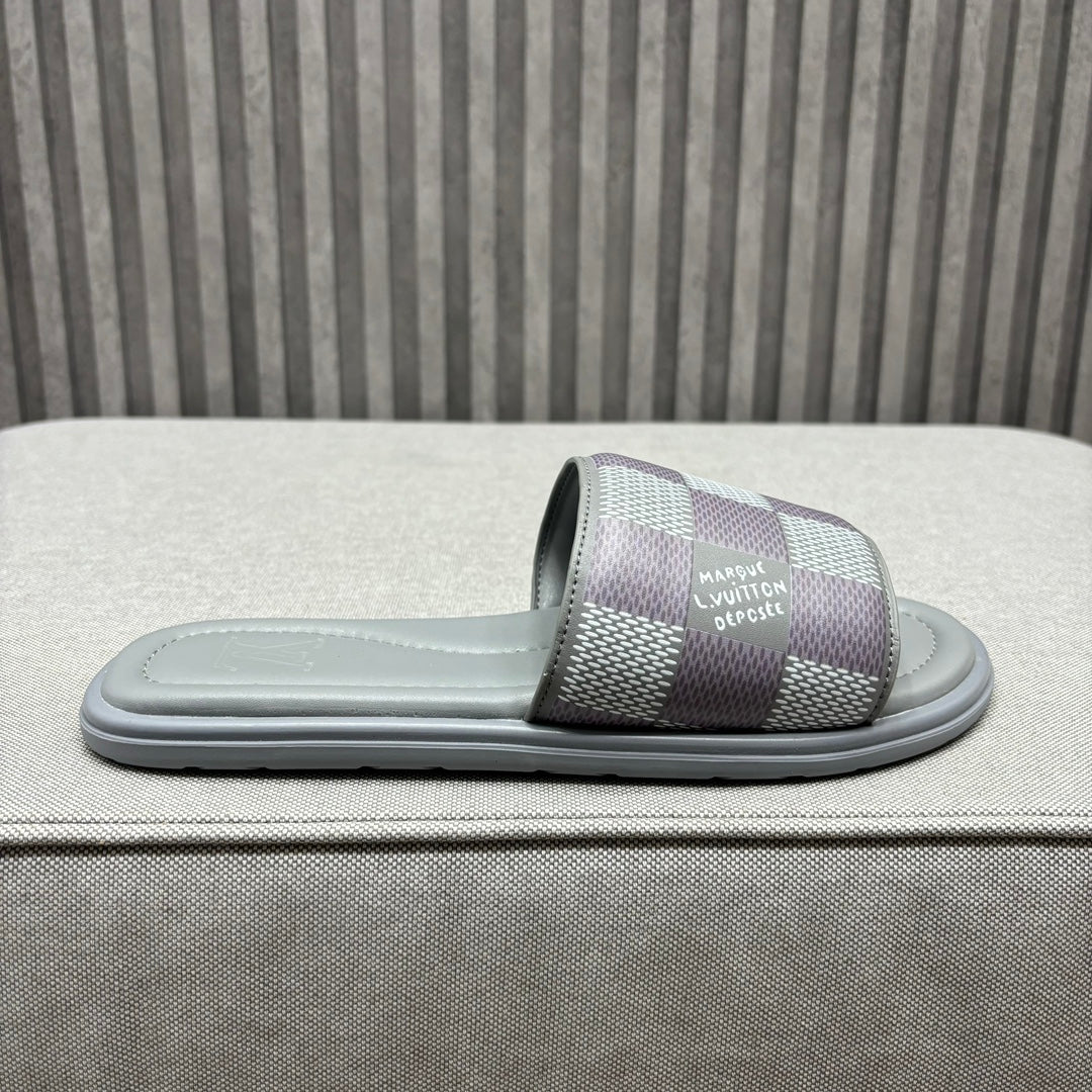 • Premium LV men's slippers, synchronizing with the 2024 early autumn runway collection. The slippers feature a high-quality fabric upper and an original, exclusive comfort sole, ensuring exceptional comfort. These are original factory-followed products.