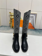 LV Westside Flat High Boot 40mm Black Mix White Monogram Lambskin