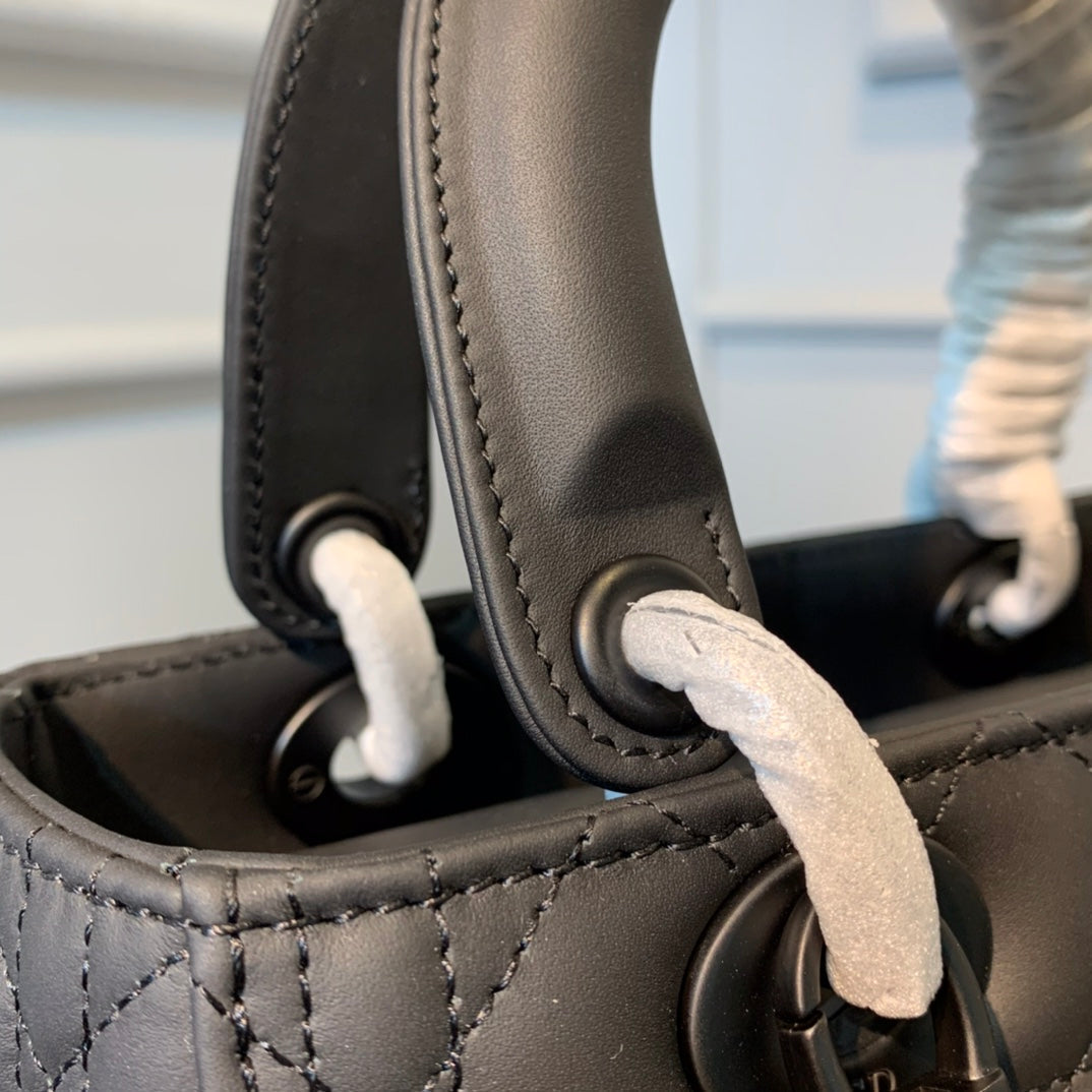 medium lady 24 black calfskin black hardware
