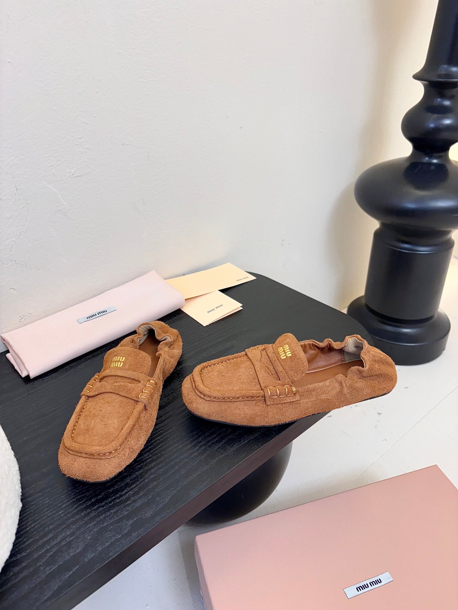 Miu 25C Ruches nappa Loafers Copper Brown Suede 235807
