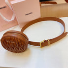 miu brown belt 30mm with circle matelasse bag