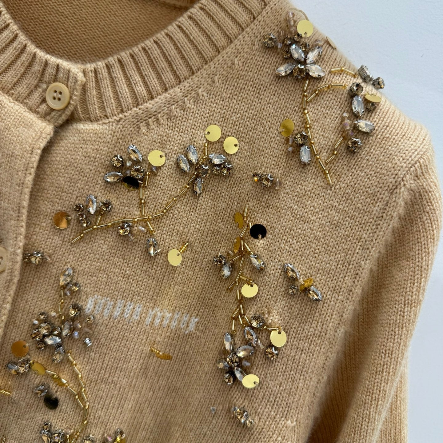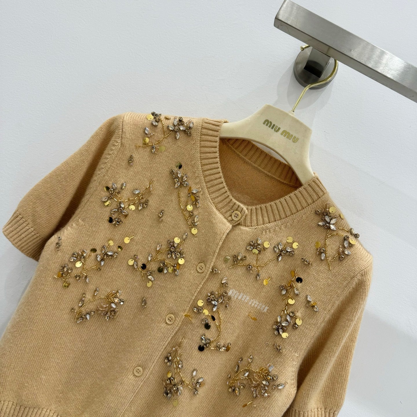 Miu Embroidered Cashmere Short Sleeve Cardigan 229364