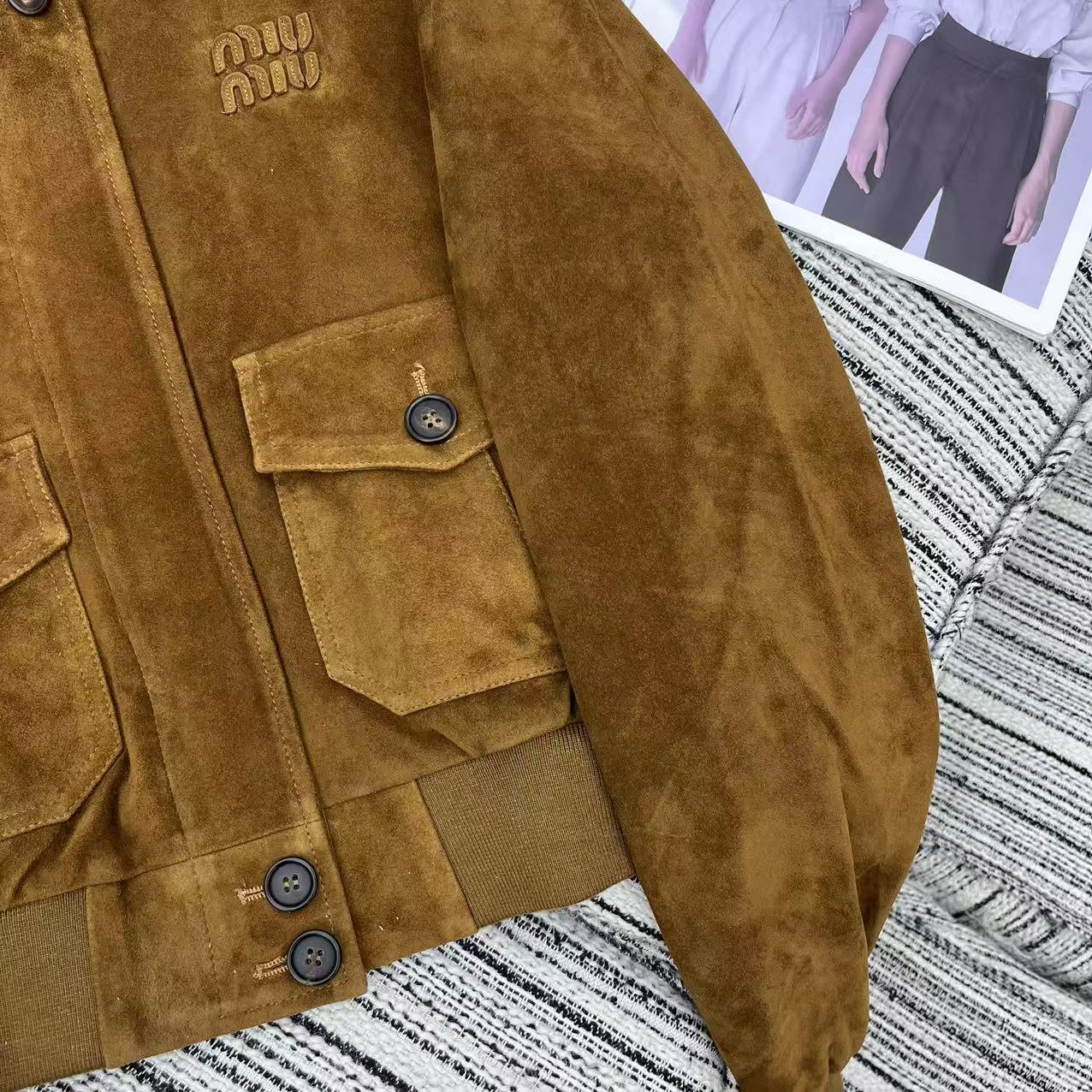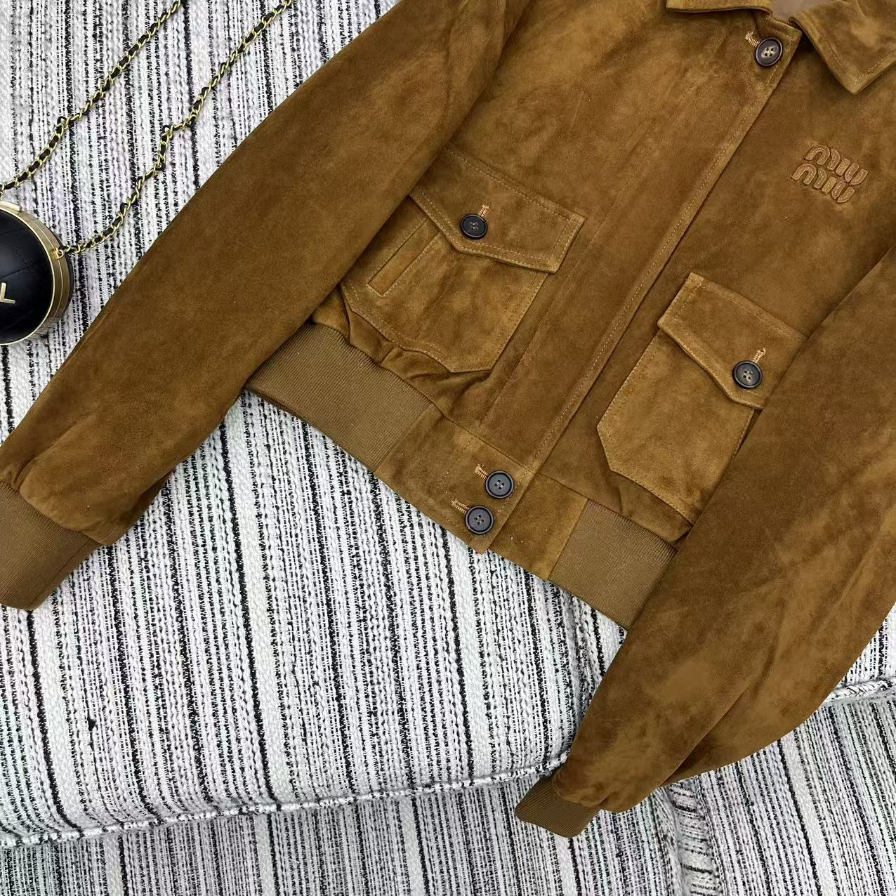 Miu Miu 25 Suede Short Coat Brown Yellow 302344