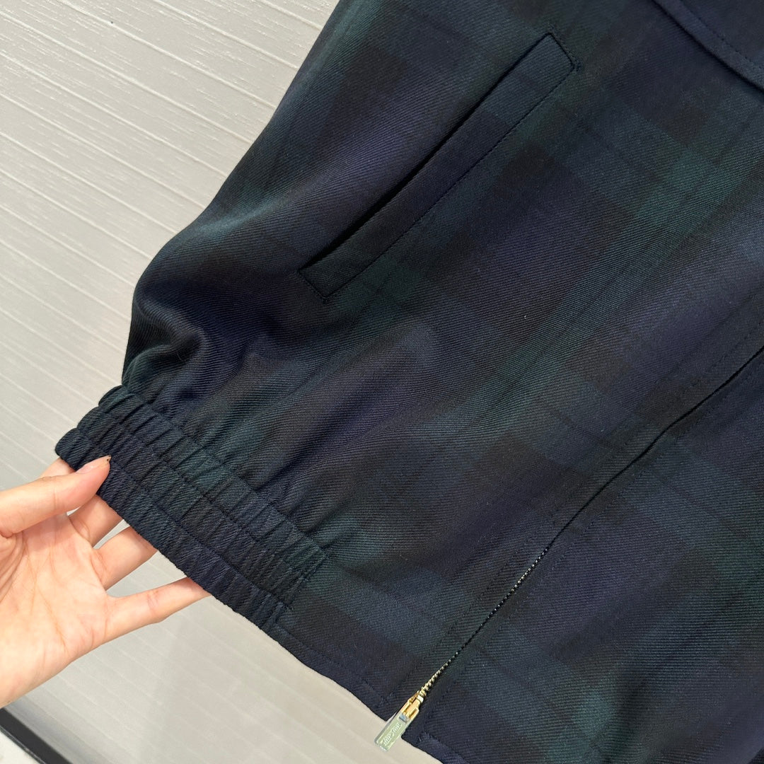 Miu Miu Plaid Drop Shoulder Jacket Green Blue Wool