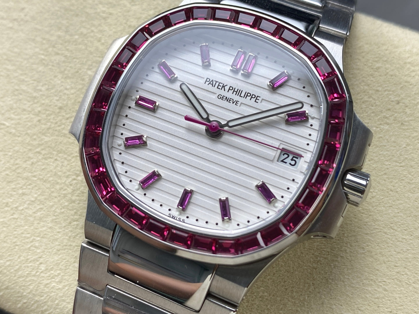 PATEK Nautilus 35.2mm Silver Pink Diamond