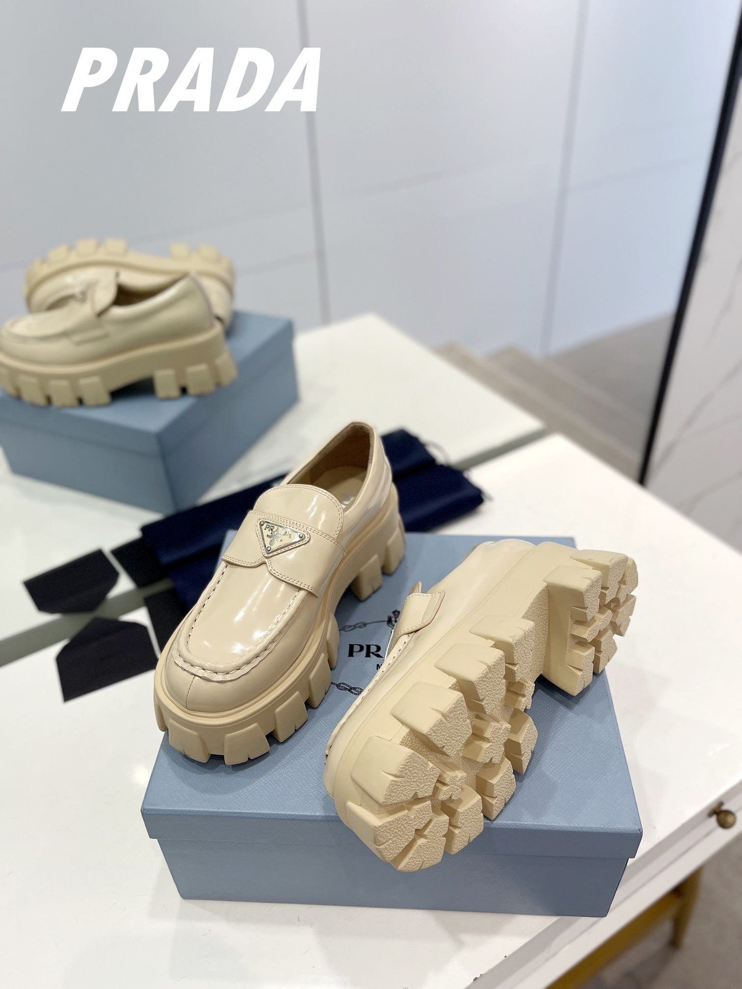 PRA BRUSHED LEATHER MONOLITH LOAFERS BEIGE