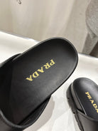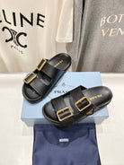 PRA STRAP SLIDES SANDALS BLACK CALFSKIN