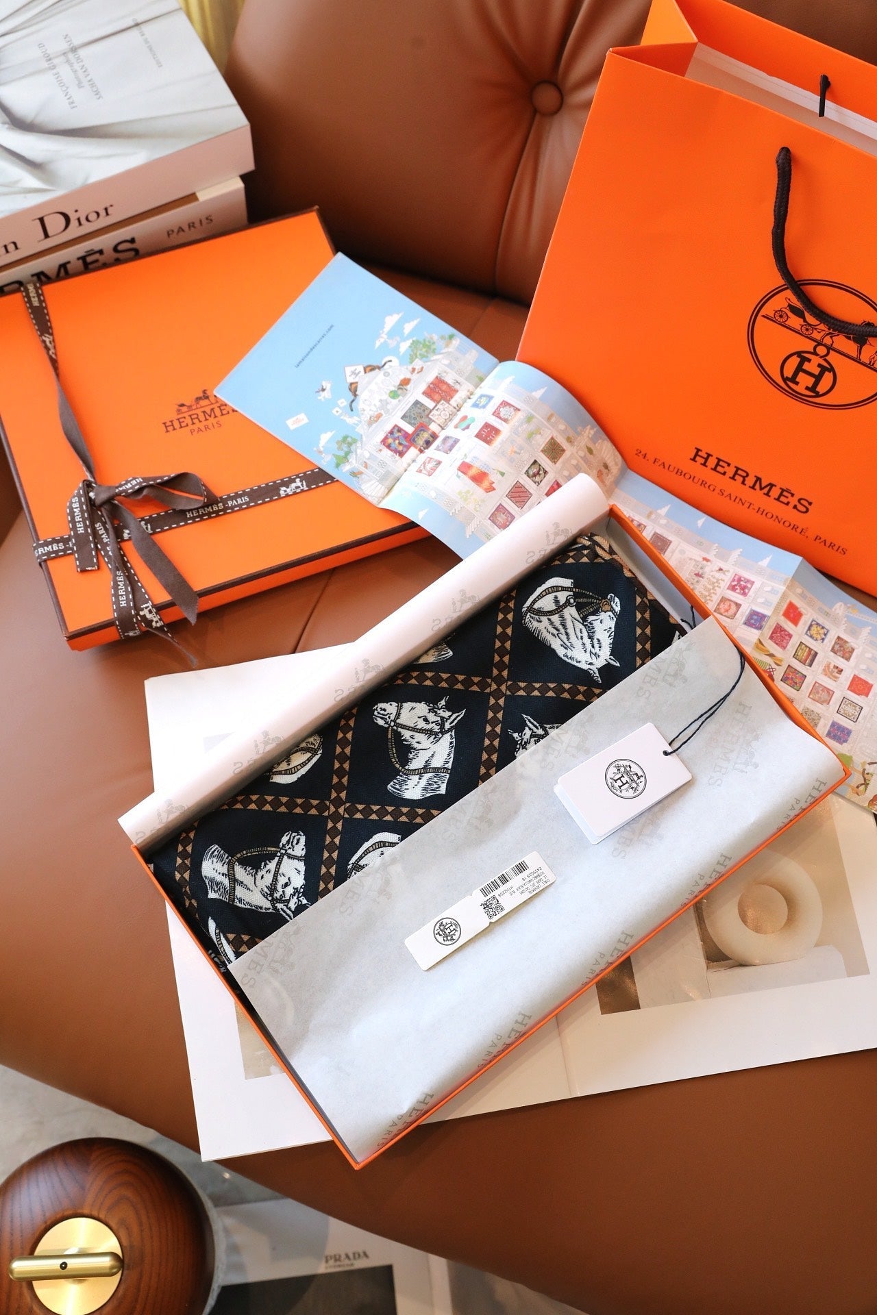 Scarf 140 CM In Black Mix White Cashmere And Silk 335765