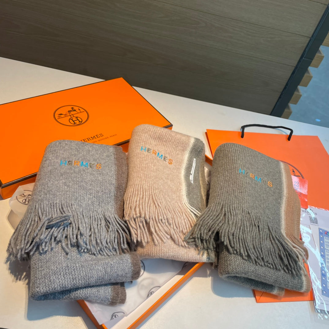 Scarf 180 CM Beige Mix Grey White Cashmere Knit 398251