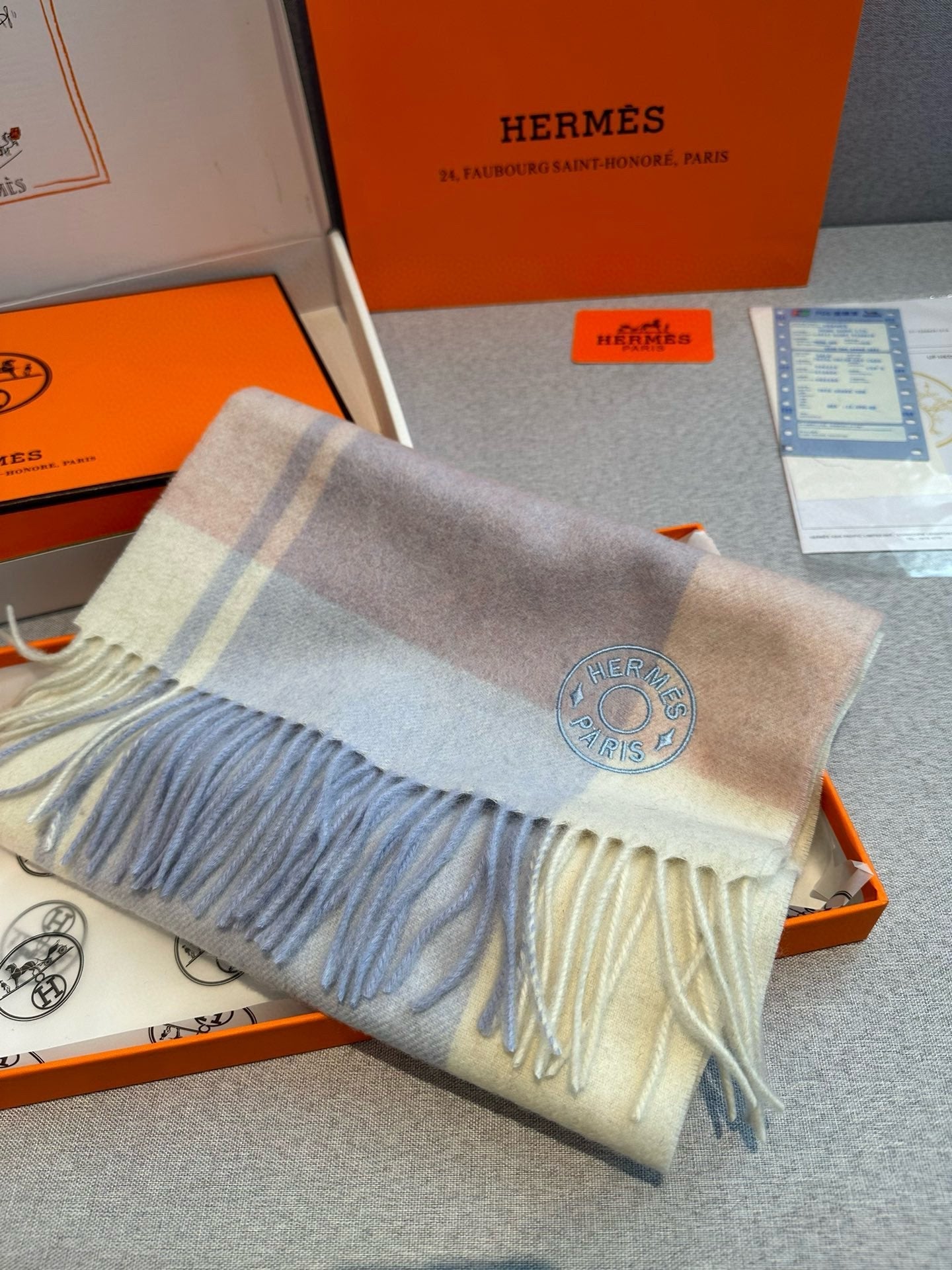 Scarf 180 CM In Light Blue Mix White Light Pink Cashmere 381231