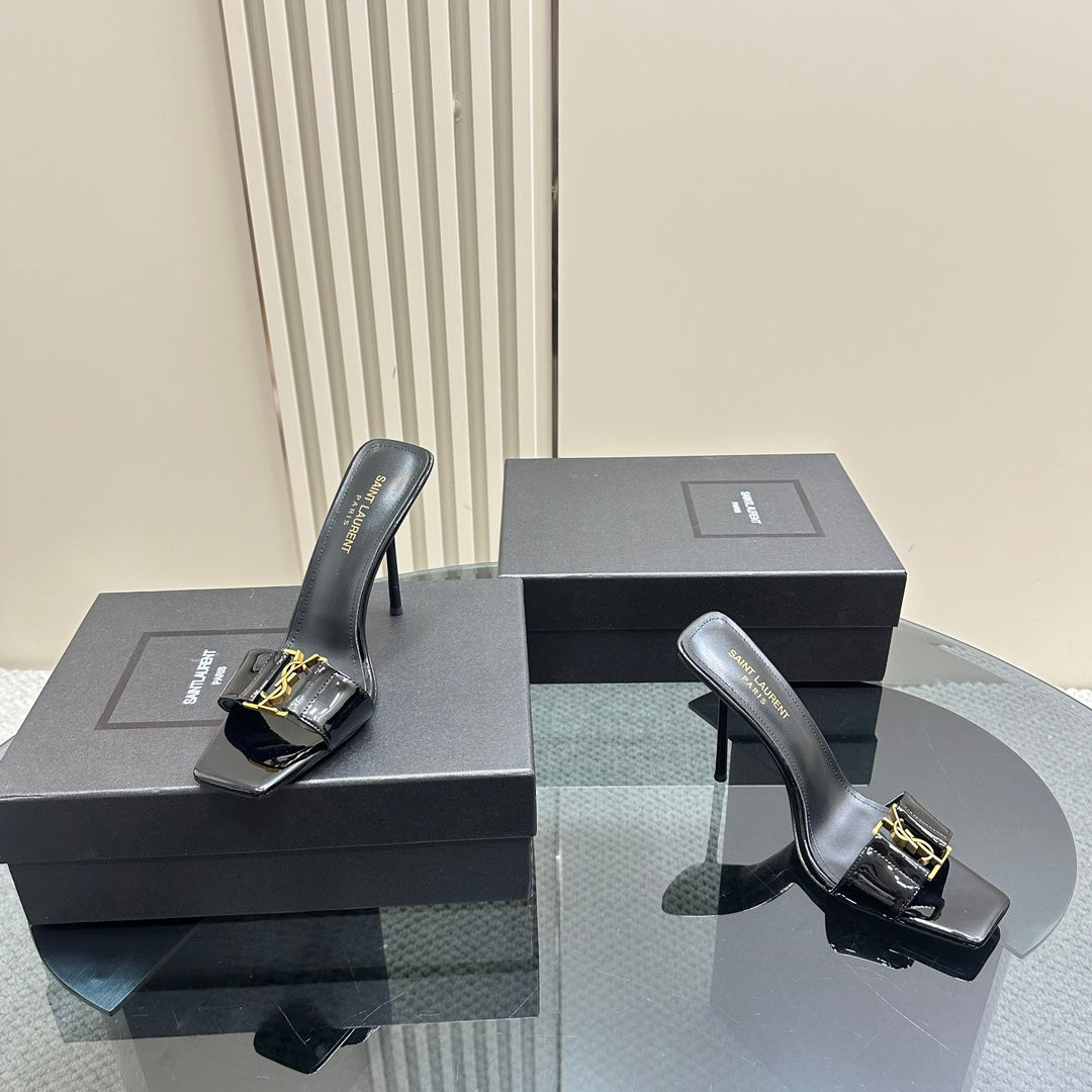 SL BABYLONE SLIDE PUMPS 115 BLACK POLISHED CALFSKIN