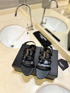 SL LOGO FLAT SANDALS BLACK CALFSKIN