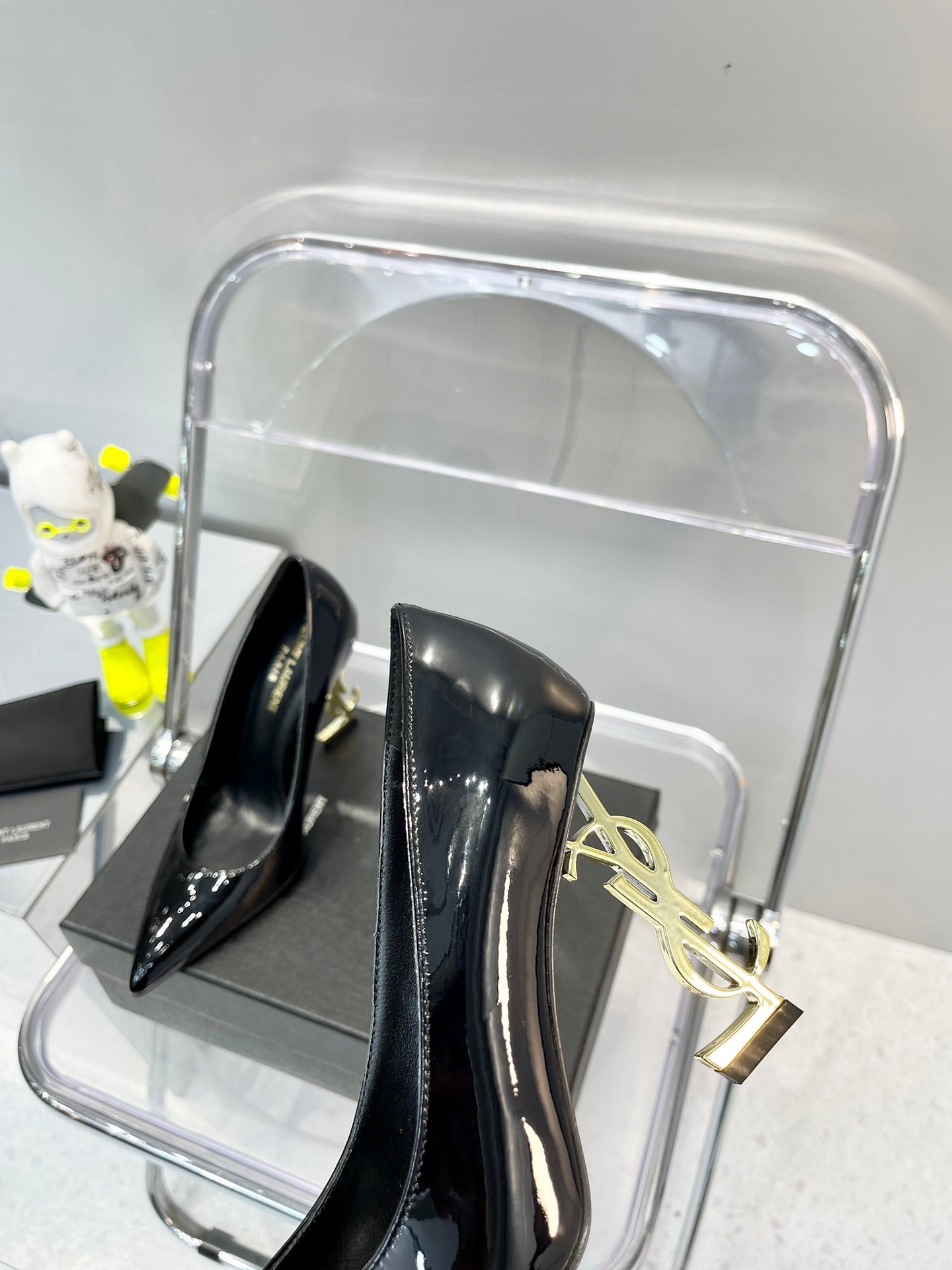 SL OPYUM BASIC HIGH HEEL BLACK CALFSKIN-GOLD HEEL