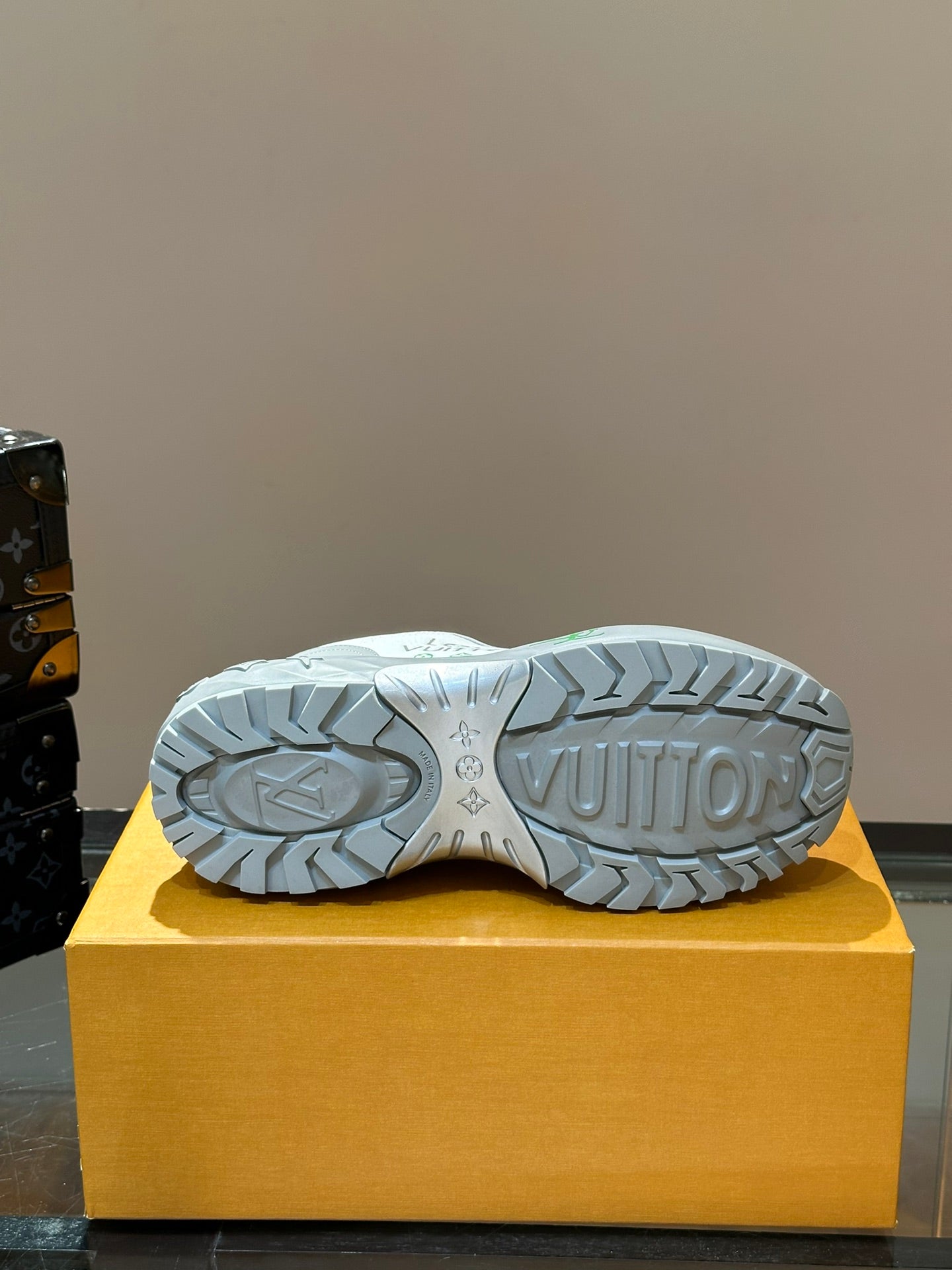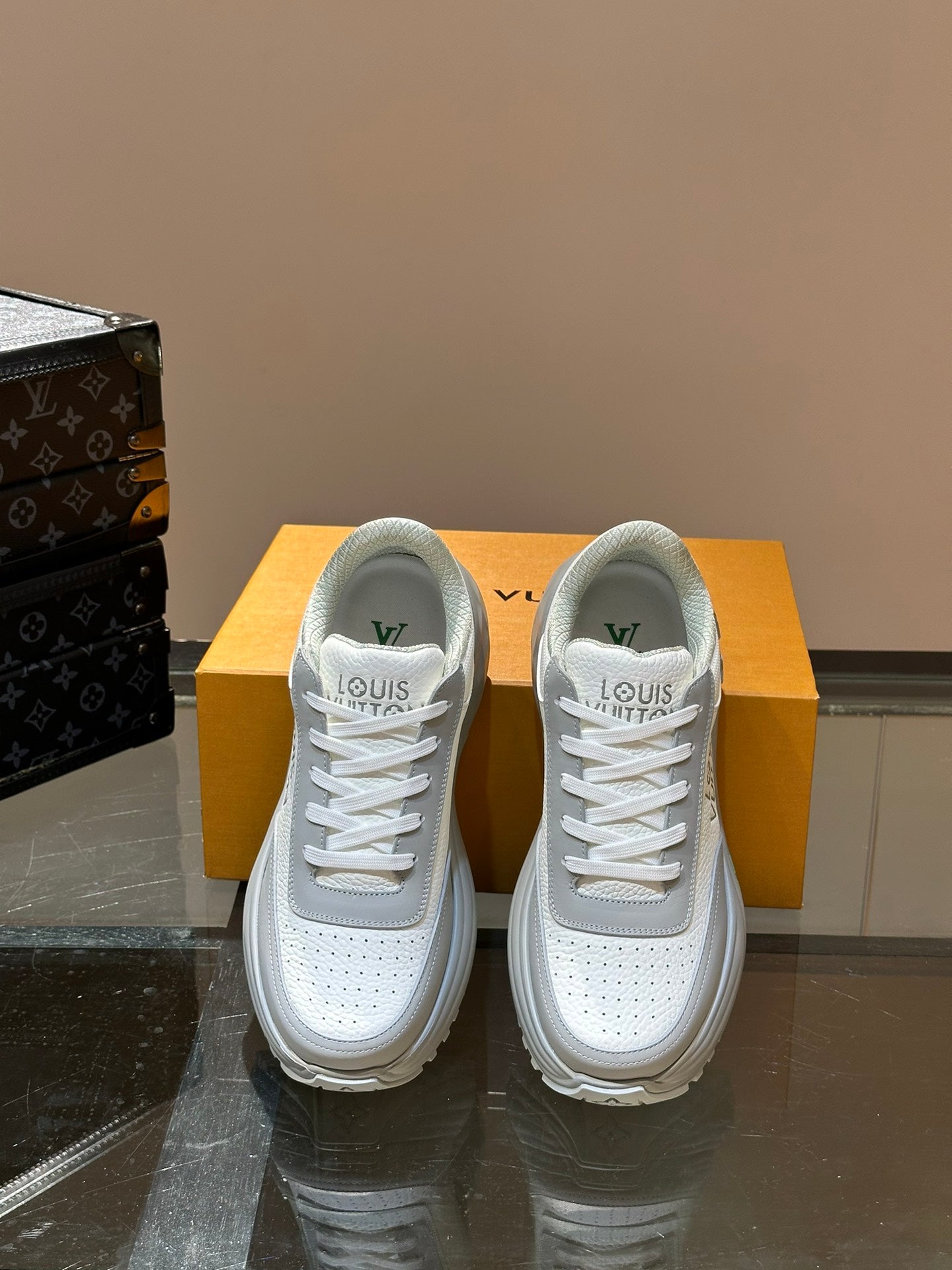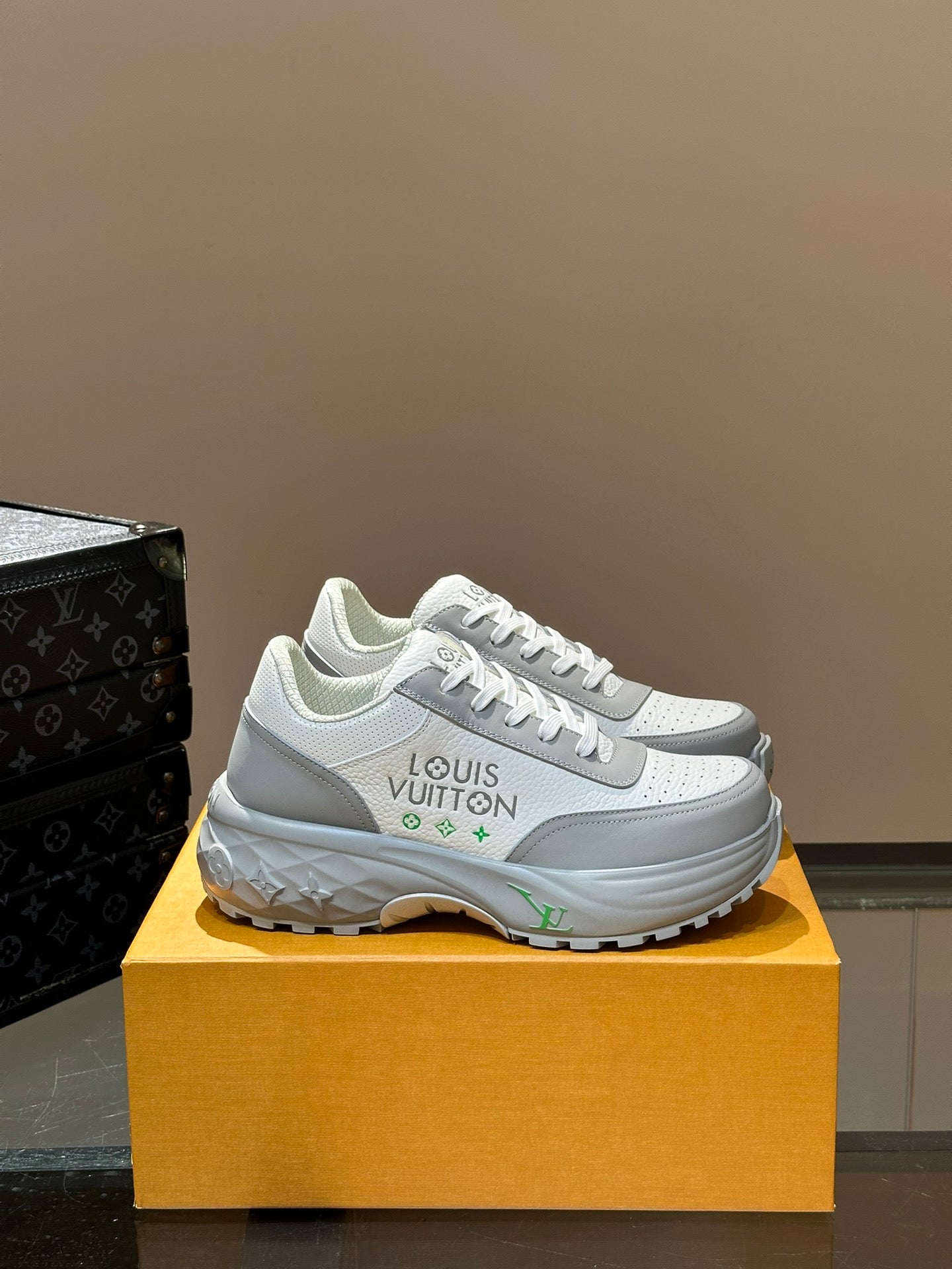 THICK-SOLED SNEAKER GREY AND WHITE CALFSKIN