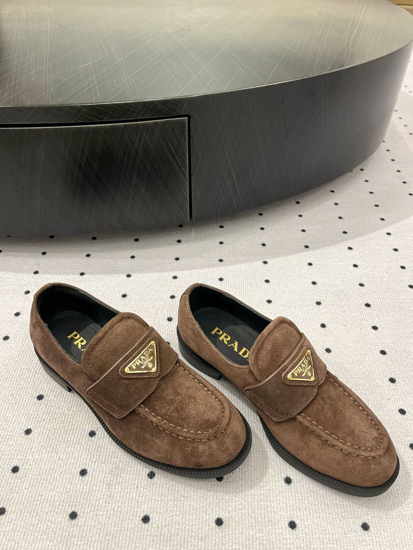 TRIANGLE LOGO LOAFER IN WOOD BROWN SUEDE