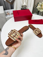 Vlogo embellished leather-trimmed raffia slides tan