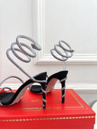 RC 25 Crystal Diamond Snake-Shaped High-Heeled Black Silver Silk Rhinestones 253546