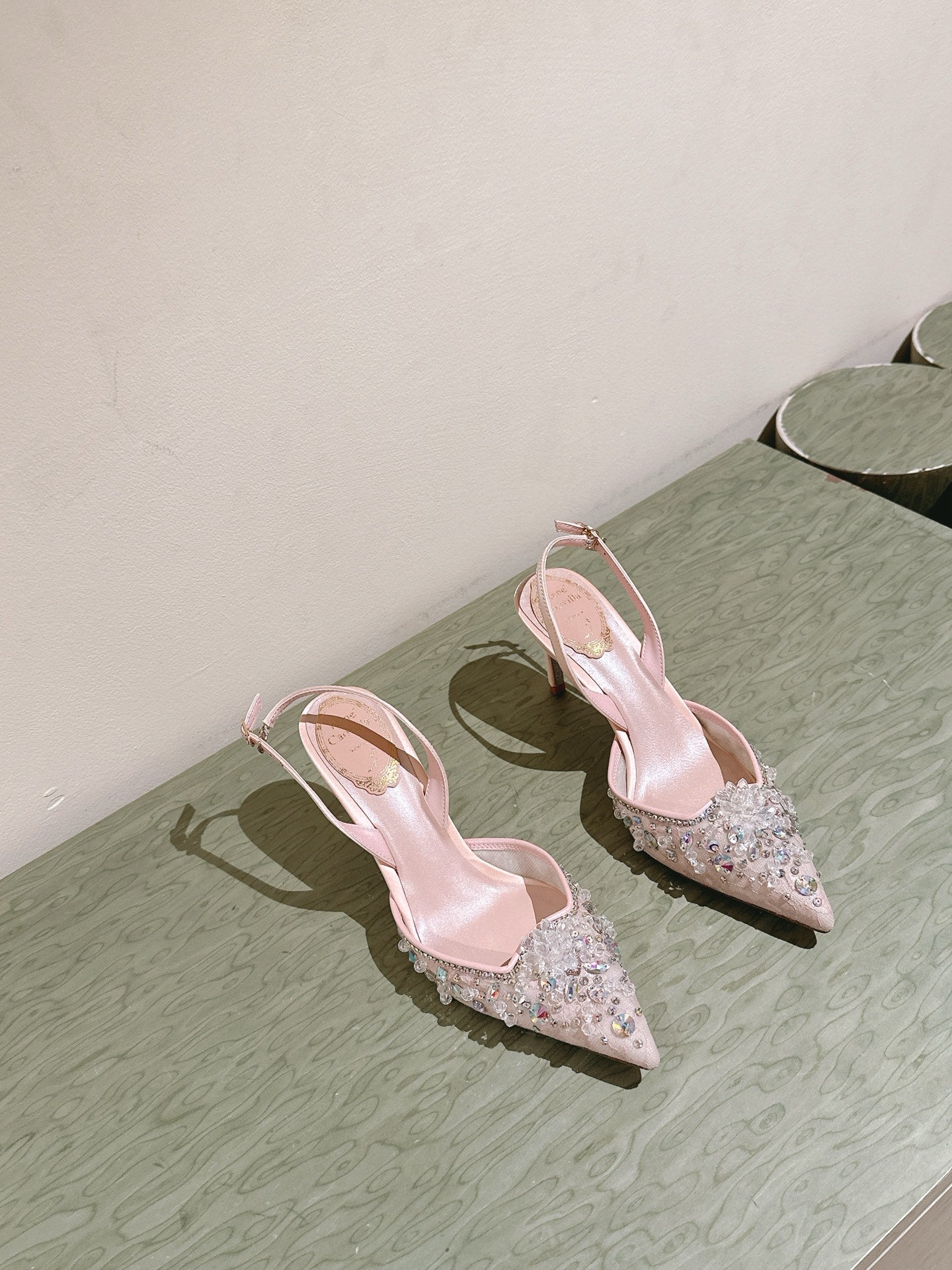 RC 25 Diamond Lace High Heeled Sandals Pink Nude Sheepskin 268056