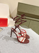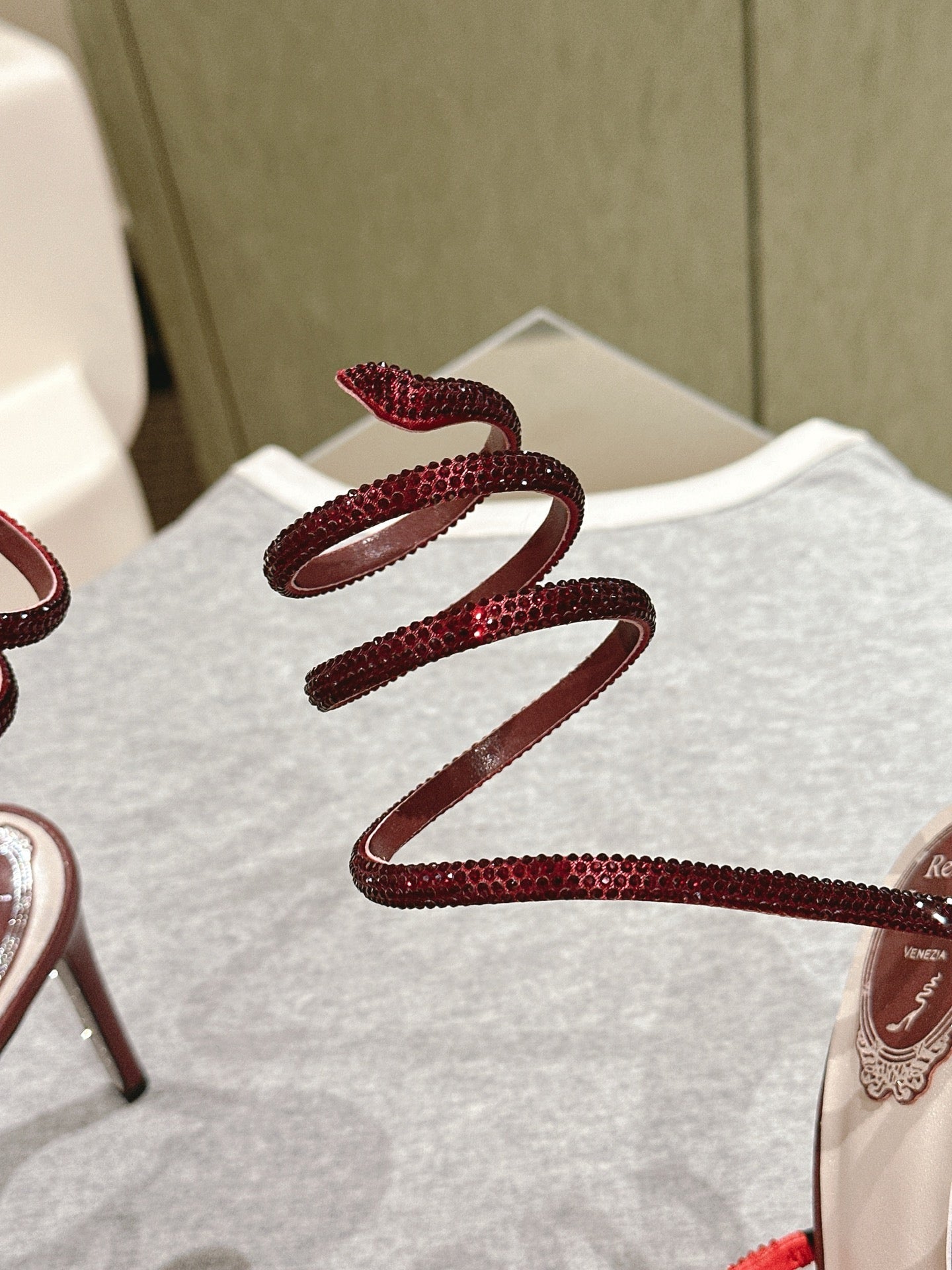 RC 25 Snake-Shaped High-Heeled Sandals Dark Red Silk Rhinestones 268061