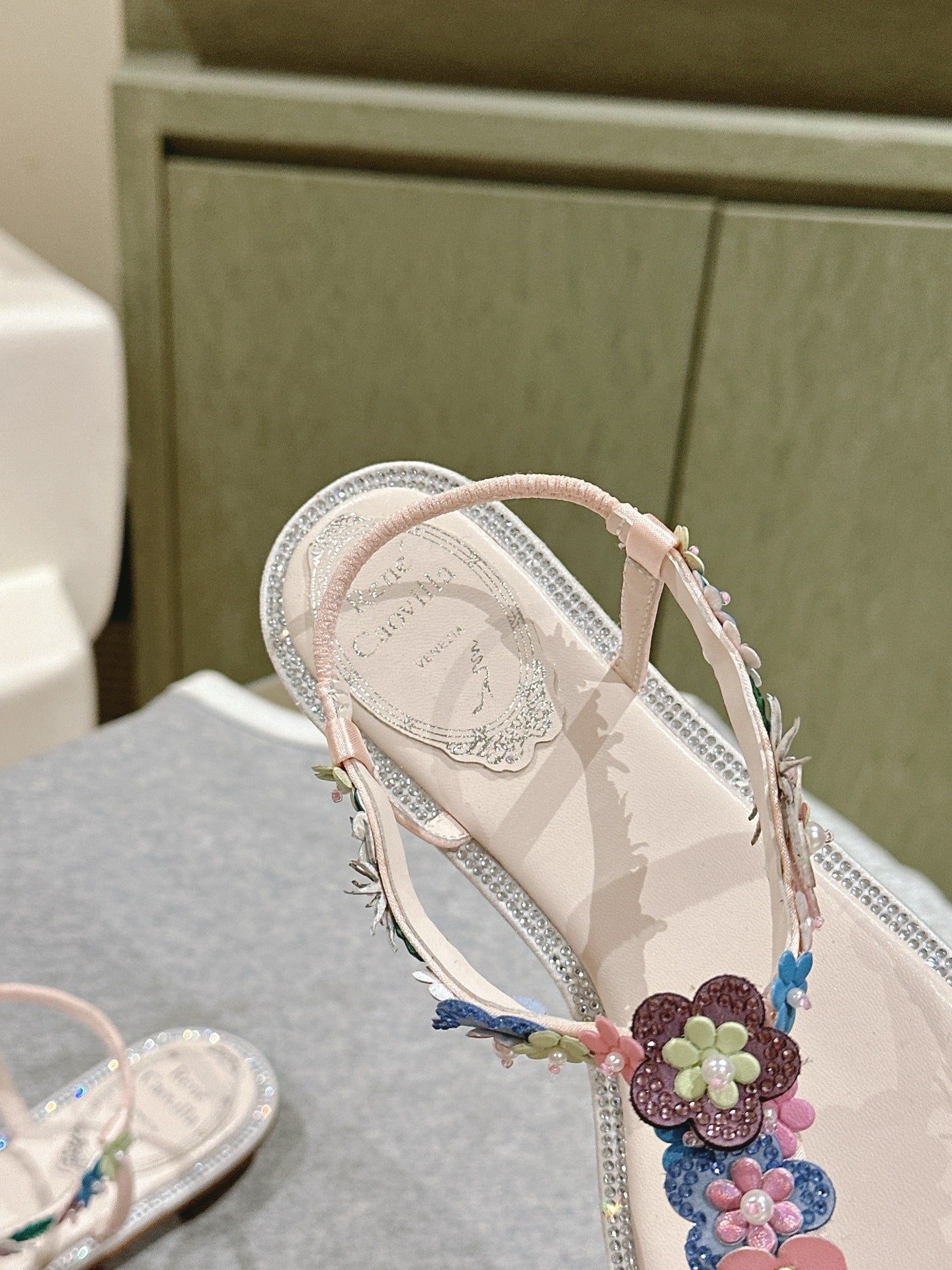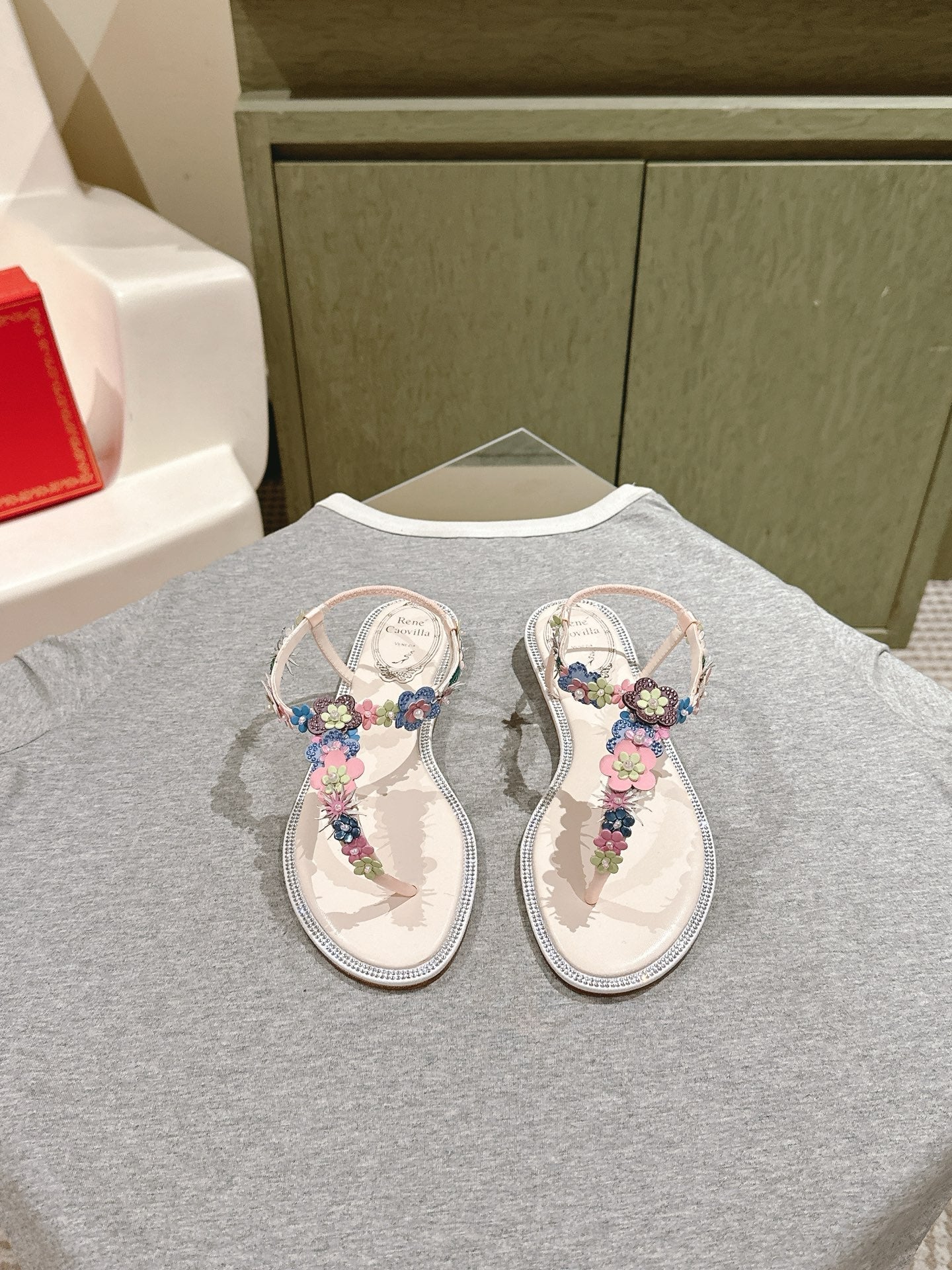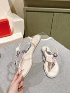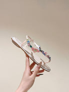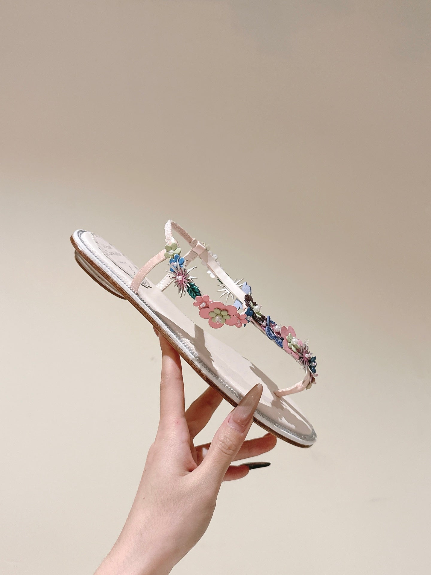 RC 25 Thong Multicolor Flower Flat Sole Light Pink Silk Rhinestones 268067