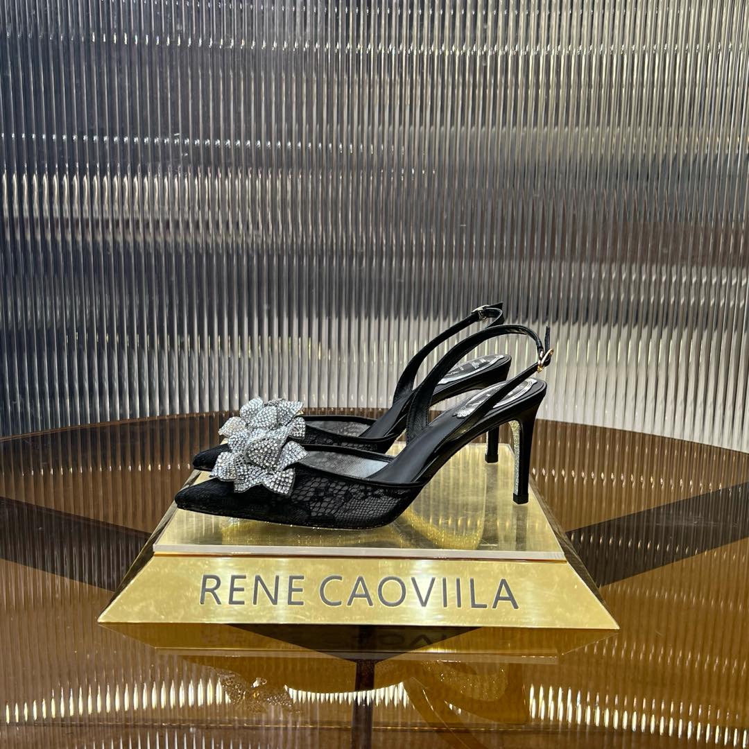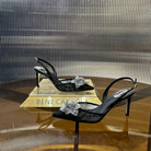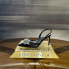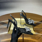 RC 25C Flower-Studded Diamond High-Heeled Sandals Black Sheepskin 174909