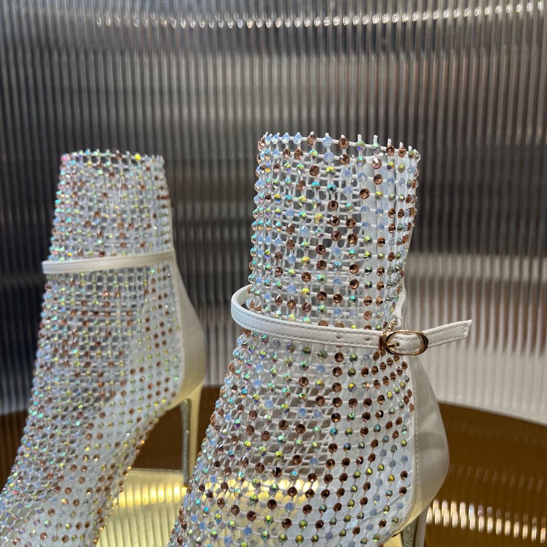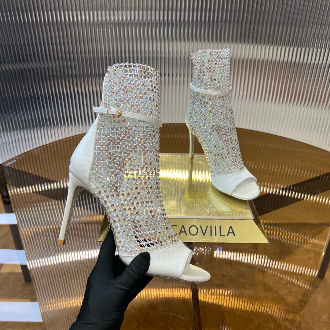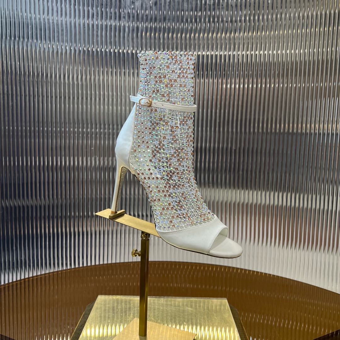 RC 25C High Heel Short Boots Mid-Tube Open-Toe Sandals White Sheepskin 174969