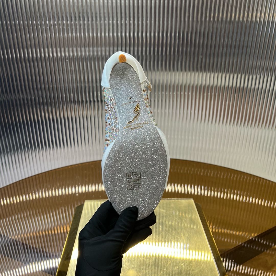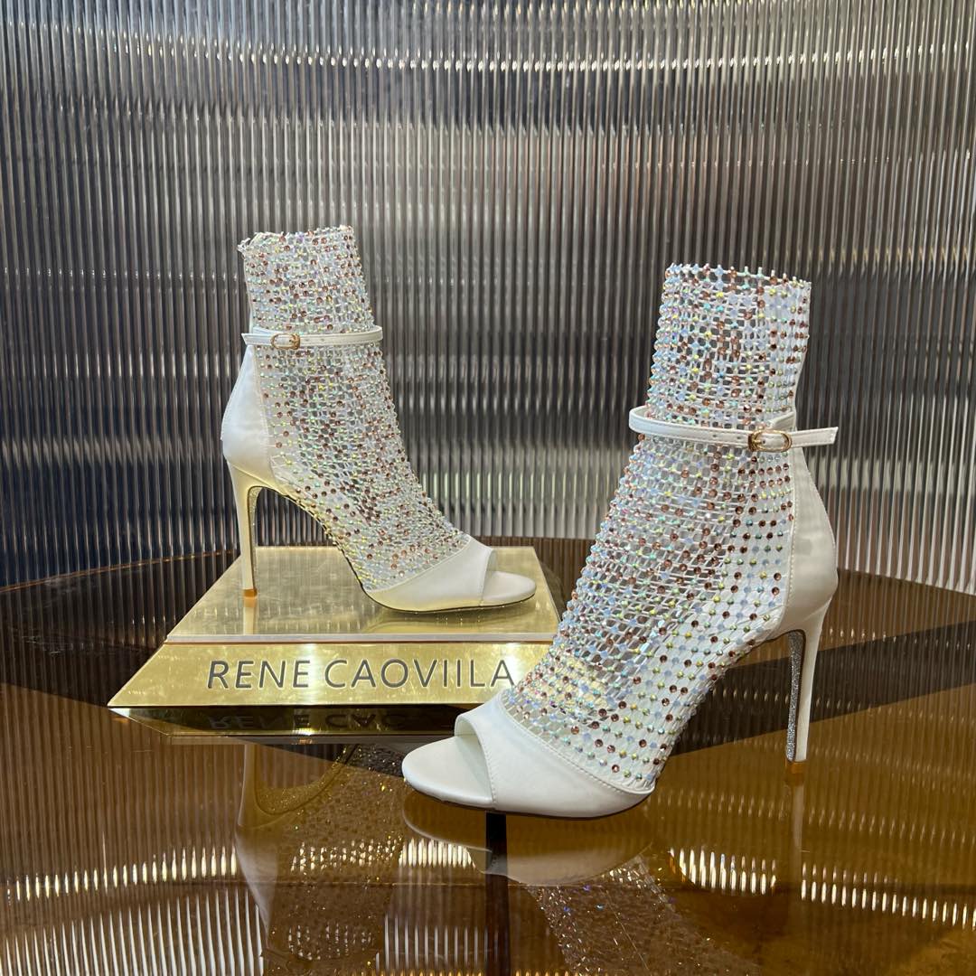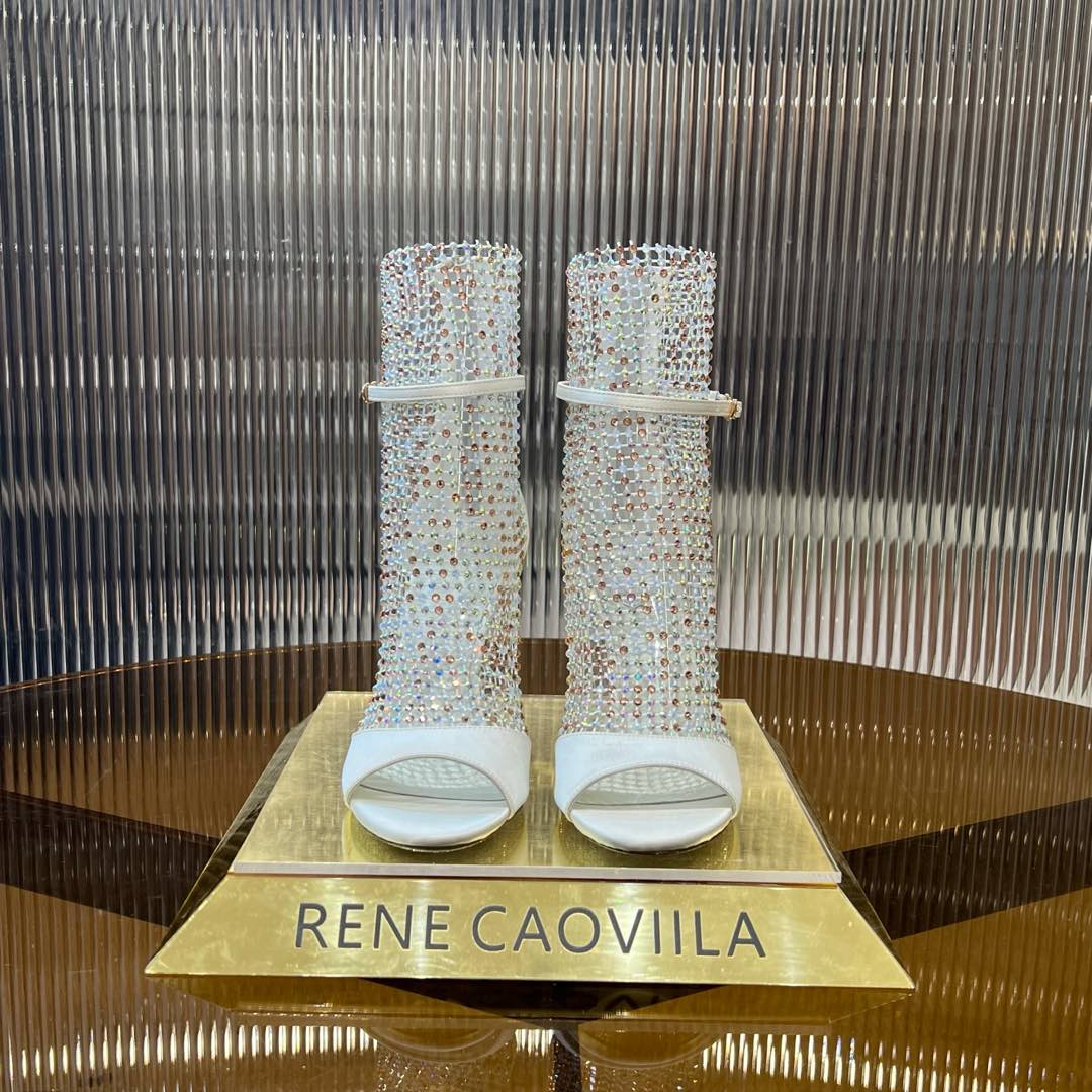 RC 25C High Heel Short Boots Mid-Tube Open-Toe Sandals White Sheepskin 174969