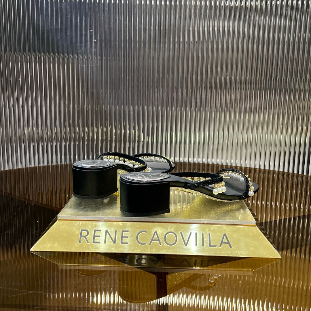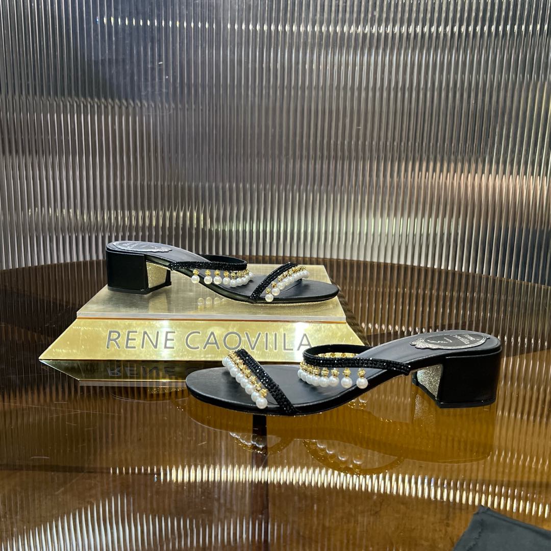 RC Gold Buckle Pearl Crystal Lamp Pendant Sandals 4.5 Black Sheepskin 175004