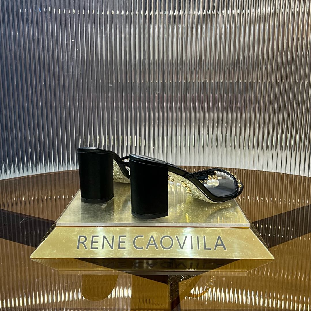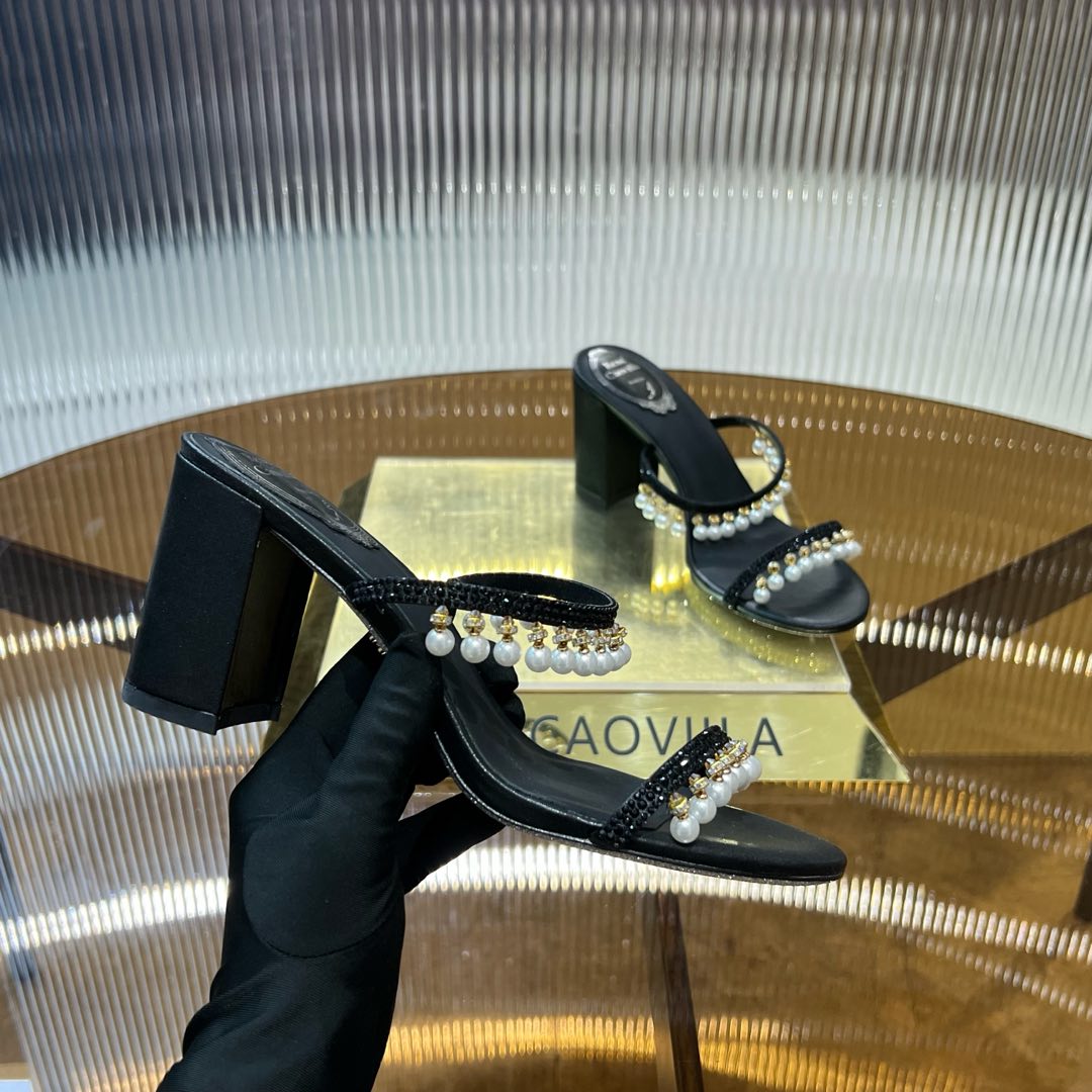 RC Gold Buckle Pearl Crystal Lamp Pendant Sandals 7.5 Black Sheepskin 174996