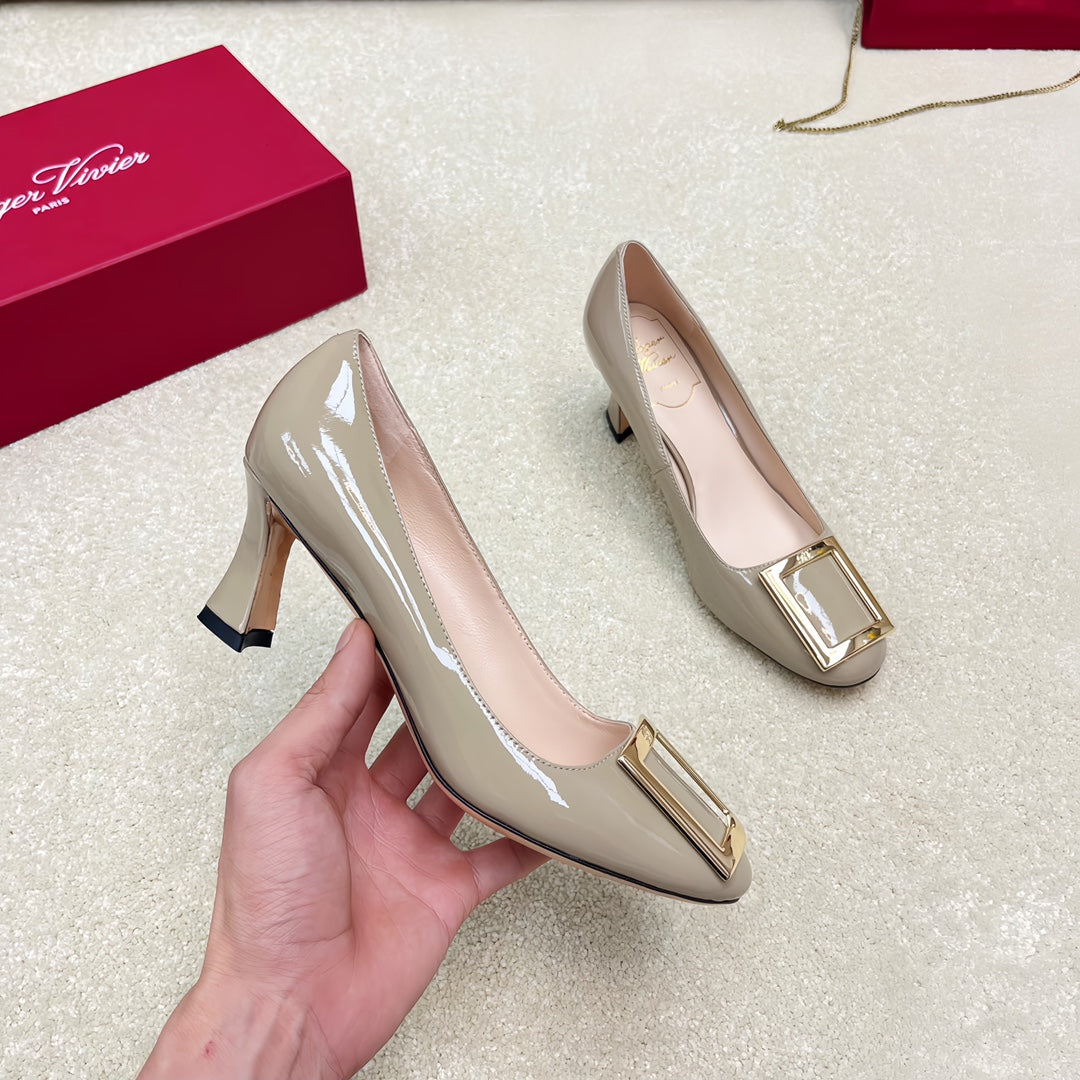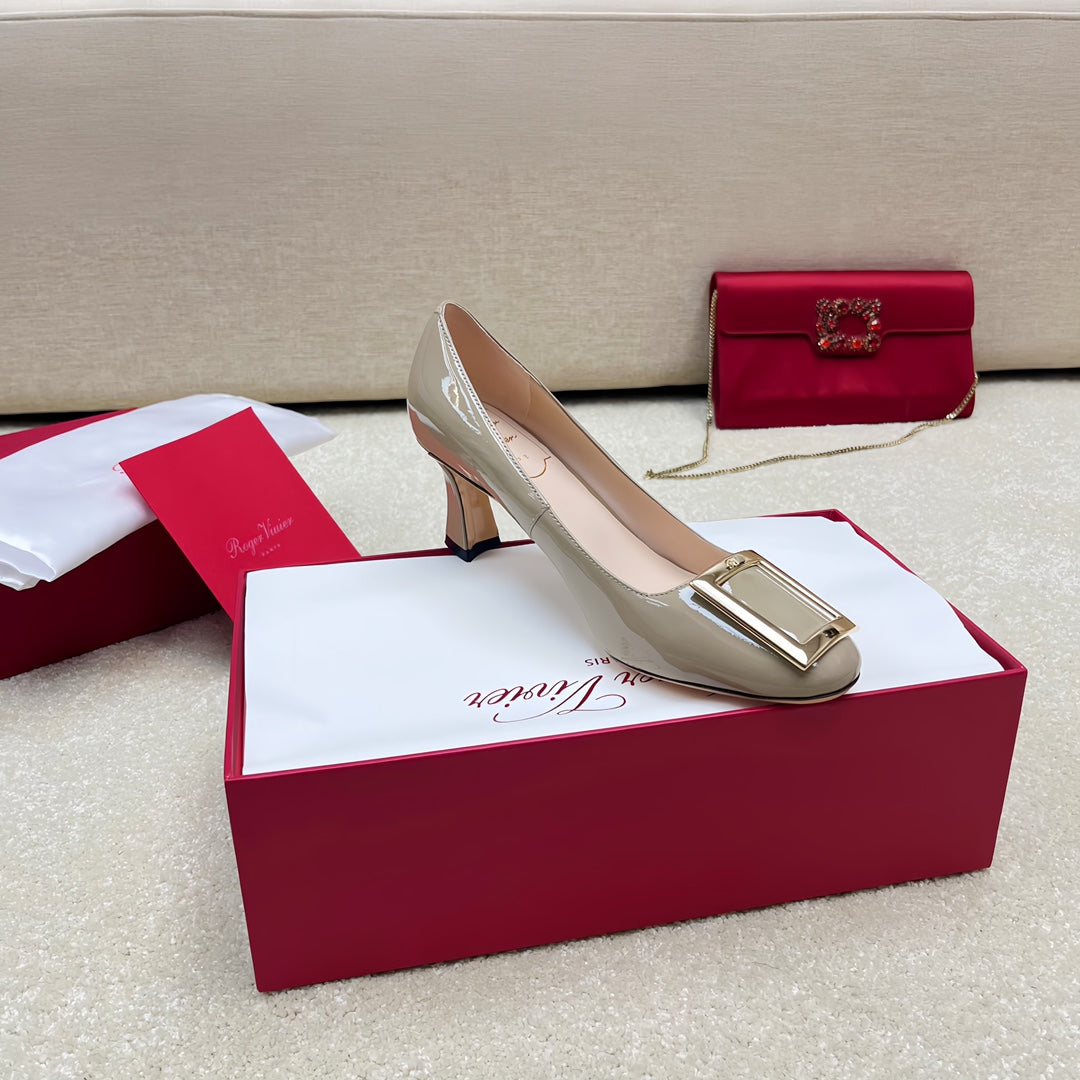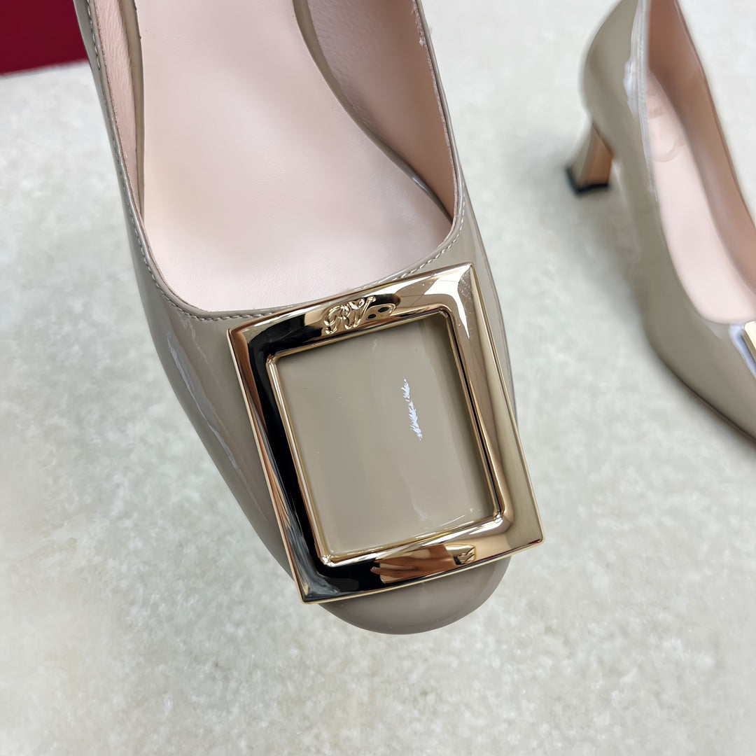 Belle Viv Edition Metal Buckle Pumps 65 Camel Patent Leather