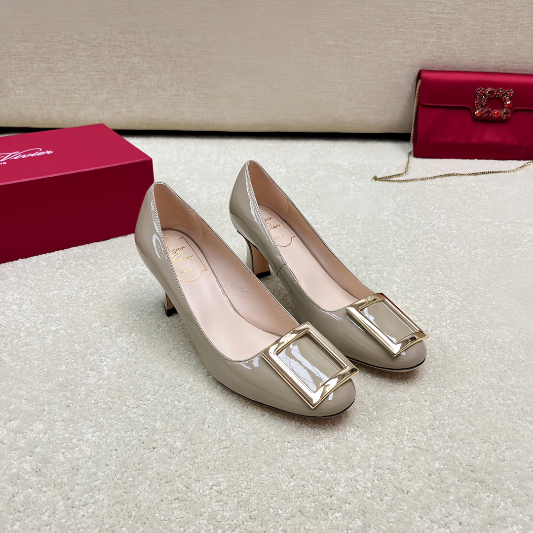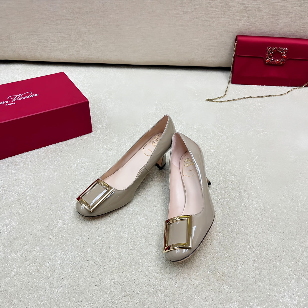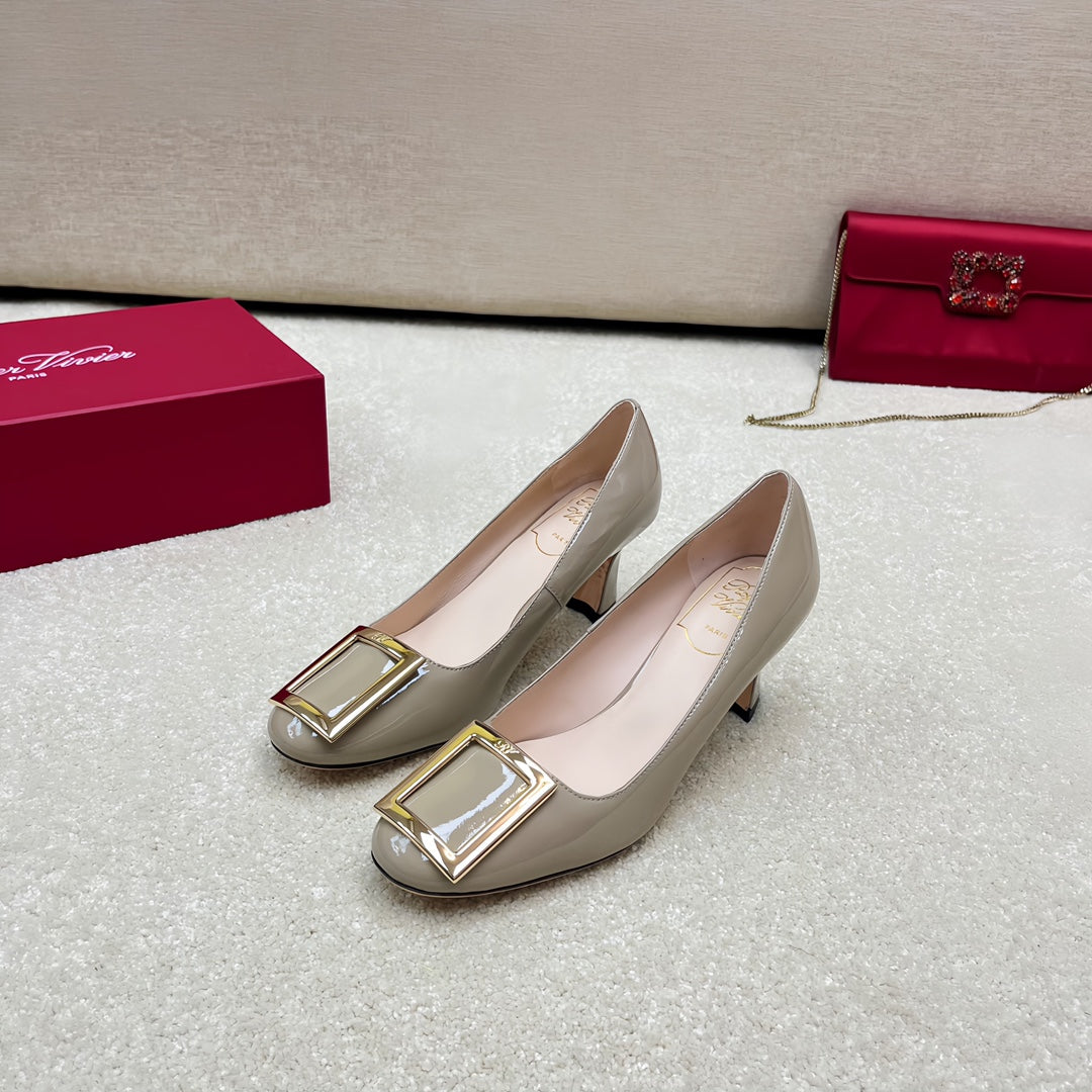 Belle Viv Edition Metal Buckle Pumps 65 Camel Patent Leather