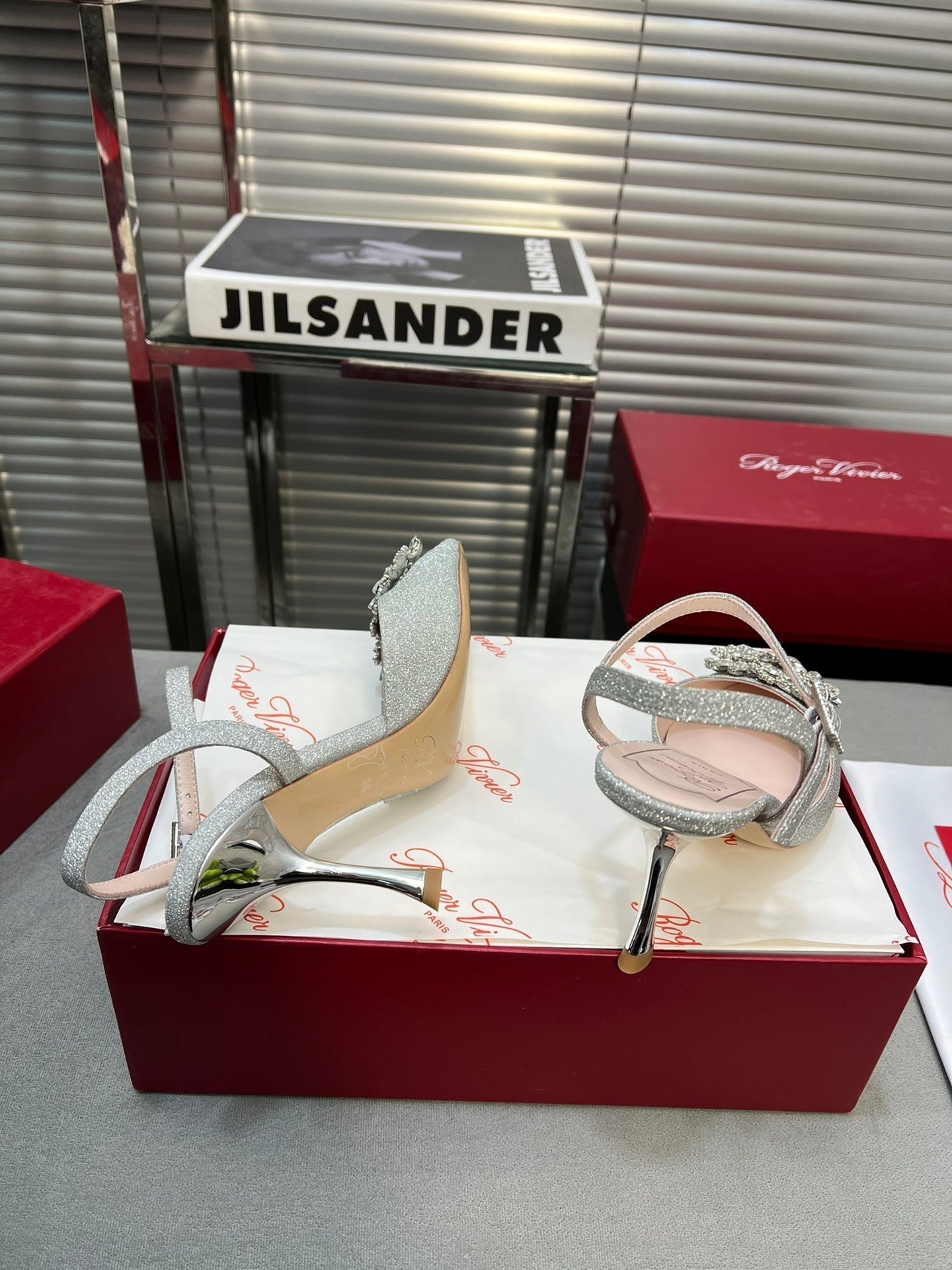 Flower Strass Buckle Slingback Pump 90 Grey Crystal Satin