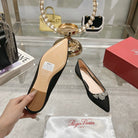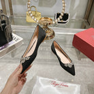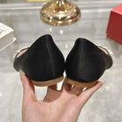 Viv 25 Crystal Diamond Buckle Flats Black Silk Satin 235396