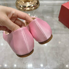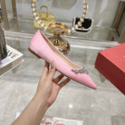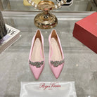 Viv 25 Crystal Diamond Buckle Flats Pink Silk Satin 235395