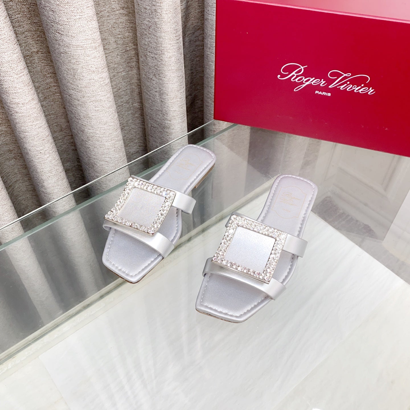 Viv 25 Diamond Flat Slippers Silver Cowhide 283037