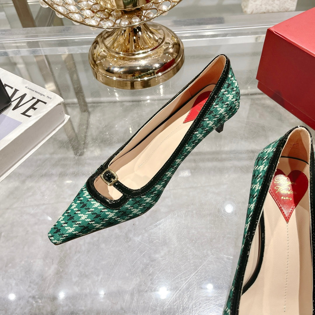 Viv Canard Pumps 55 Black Green Fabric