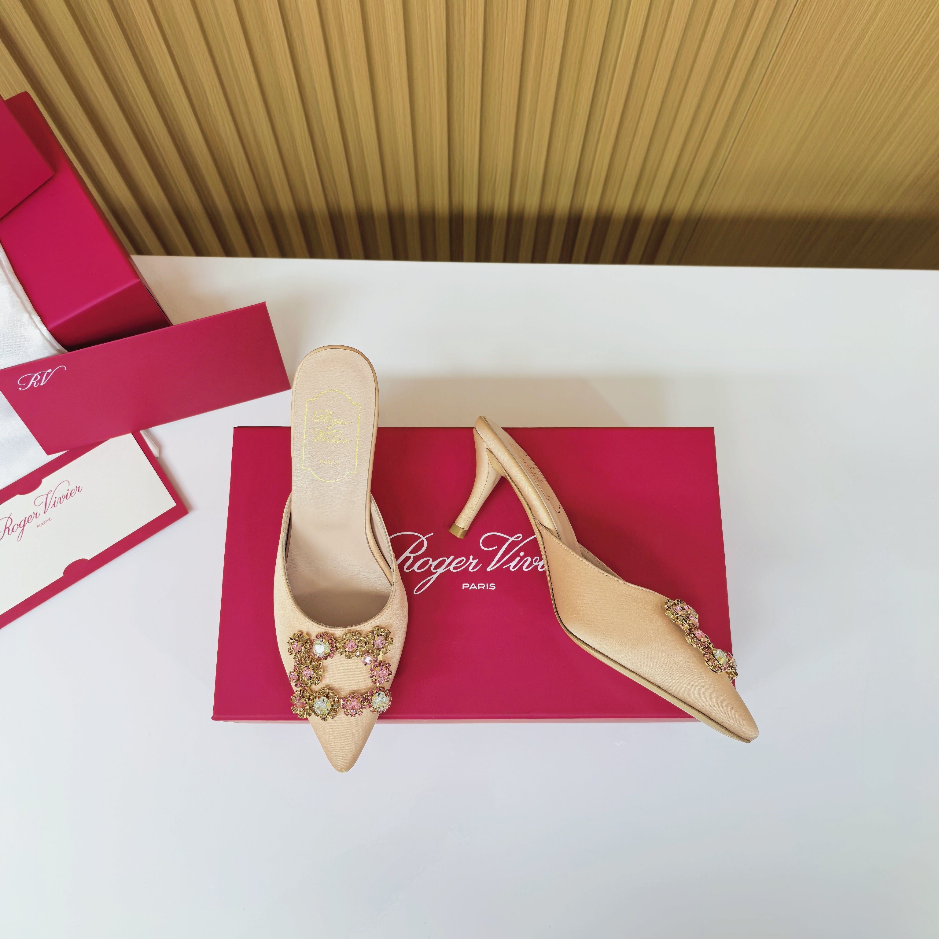 Viv Diamond Mules Champagne Silk 247392
