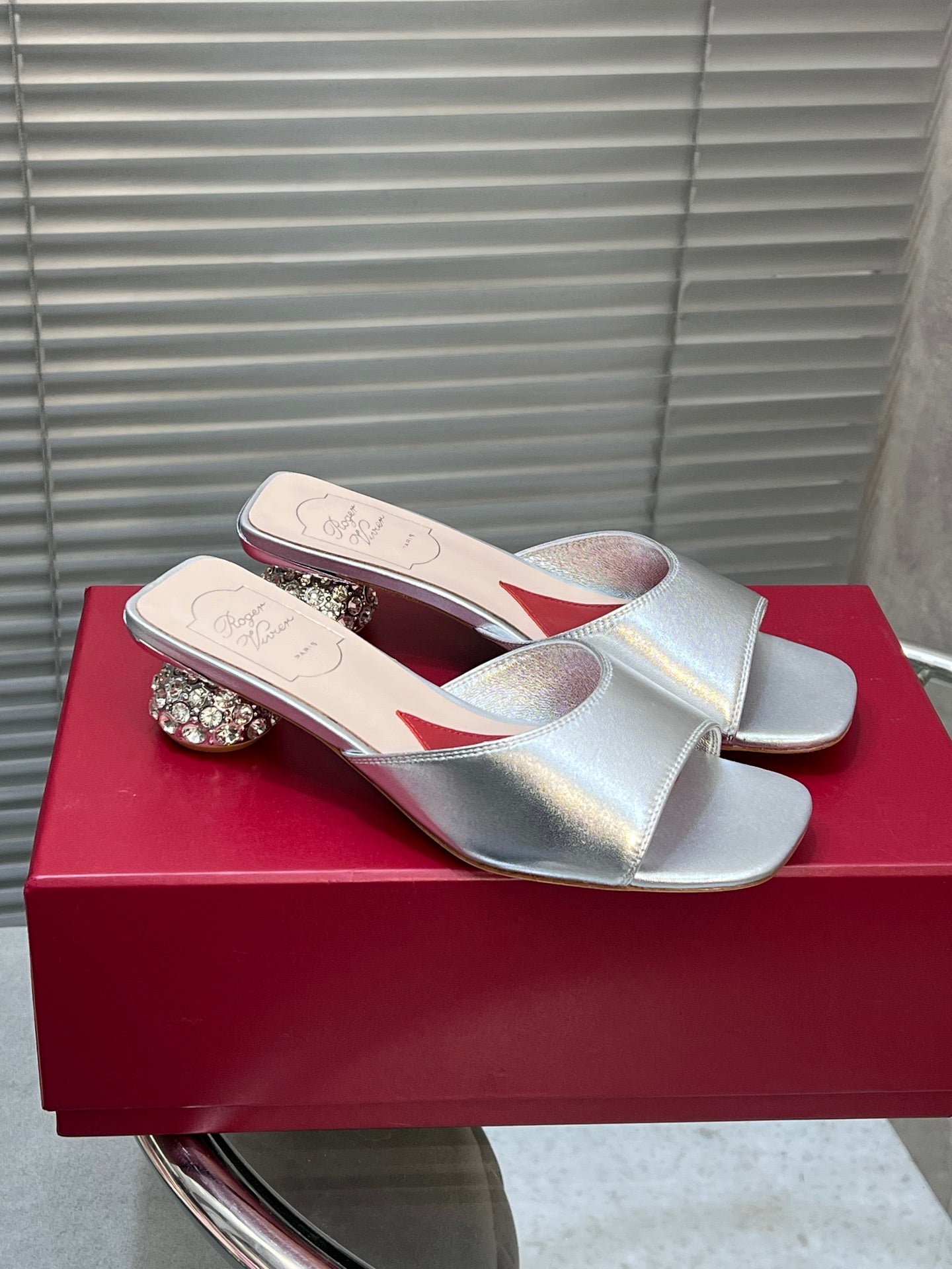 Viv Diamond Sole Mules Silver Cowhide 267687
