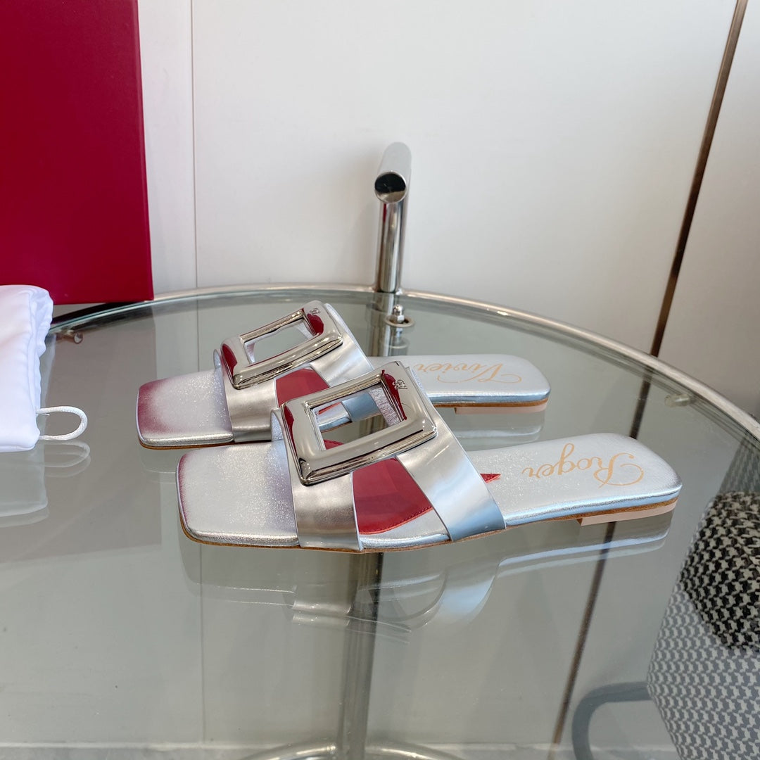Viv Love Heart Slippers Silver Fetal Cowhide 255202