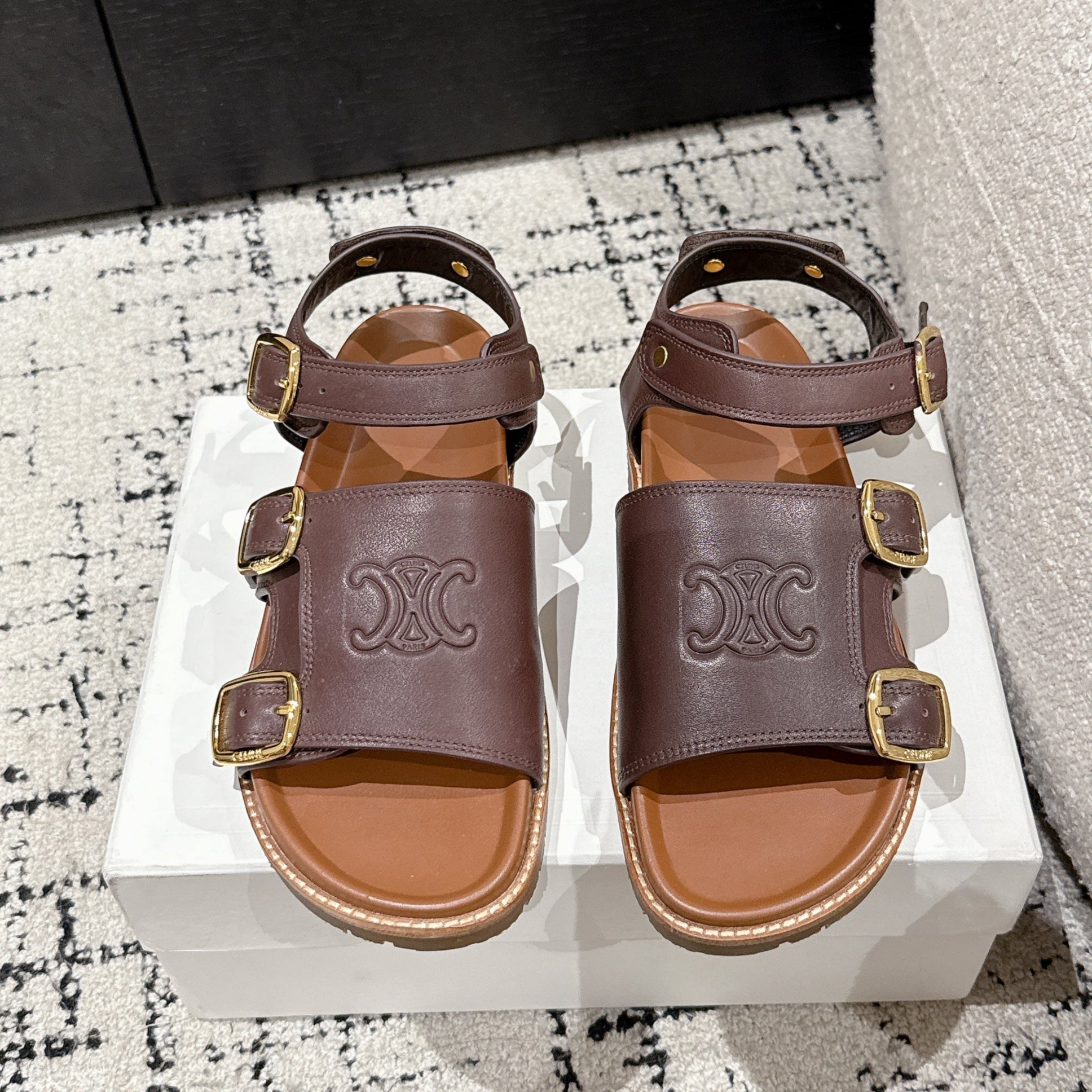 CELINE 25C Dad Sandal Mule Hickory Brown Cowhide 232352