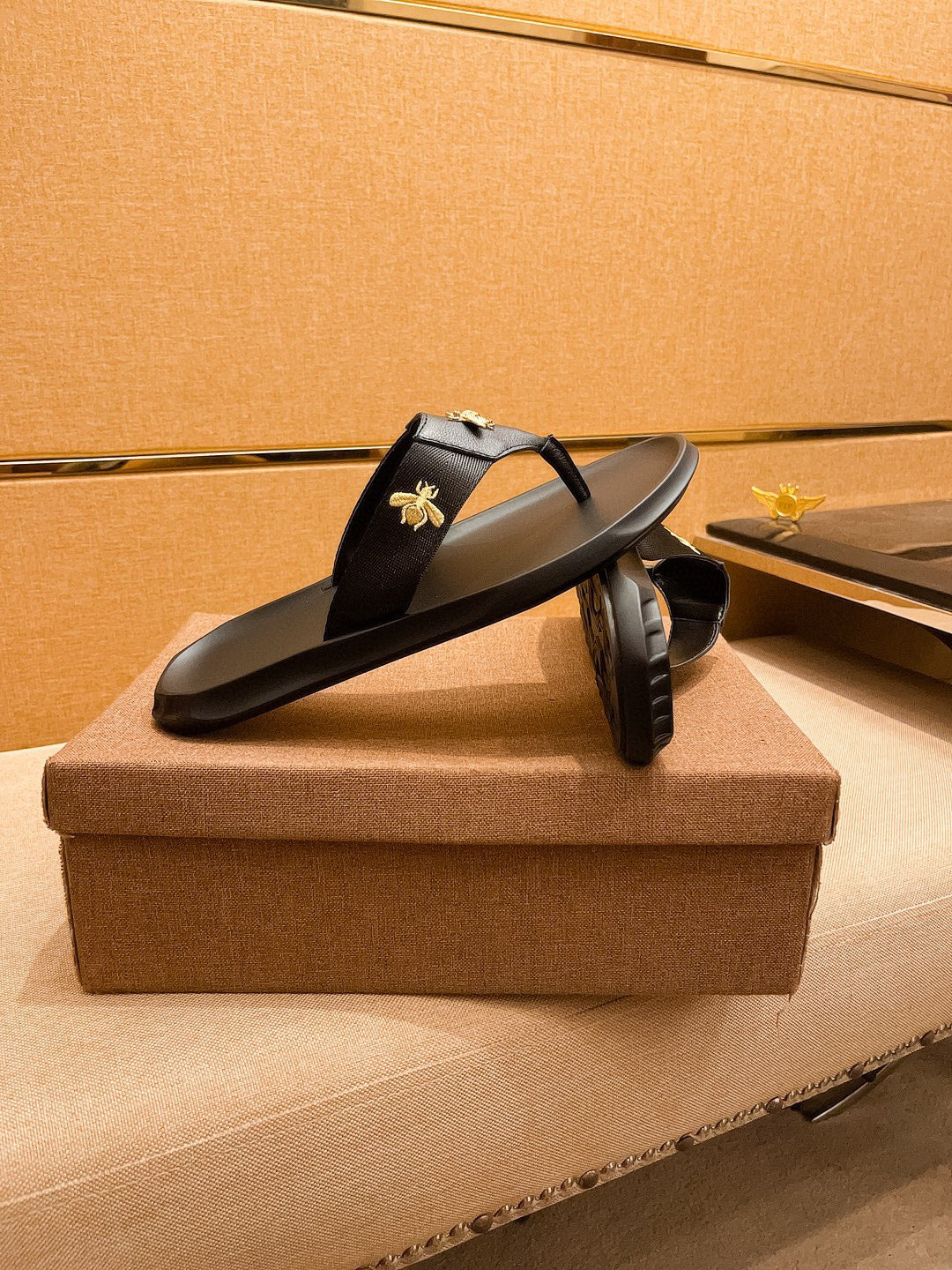GG Men's Bee Sandals Slide Black Leather 587238