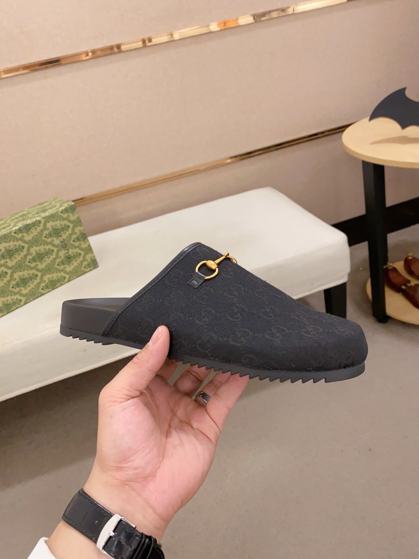 GG Men's Mule Black Printed Fabric 560358