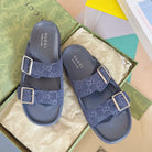 GG Men's Slide Navy Blue Embossed Suede 595718