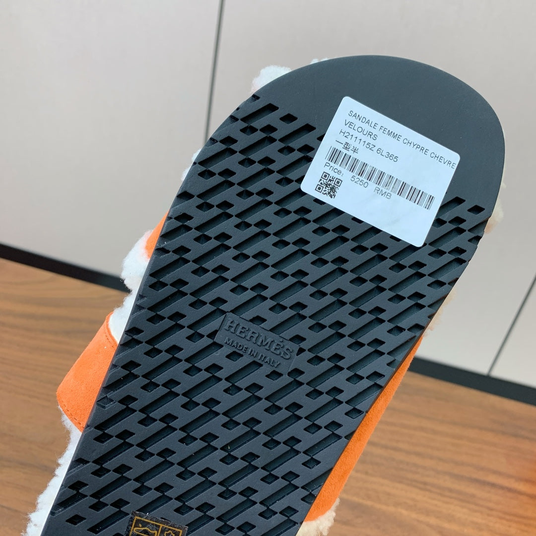 HM Chypre Sandal In Orange Mix White Fleece And Suede 984196