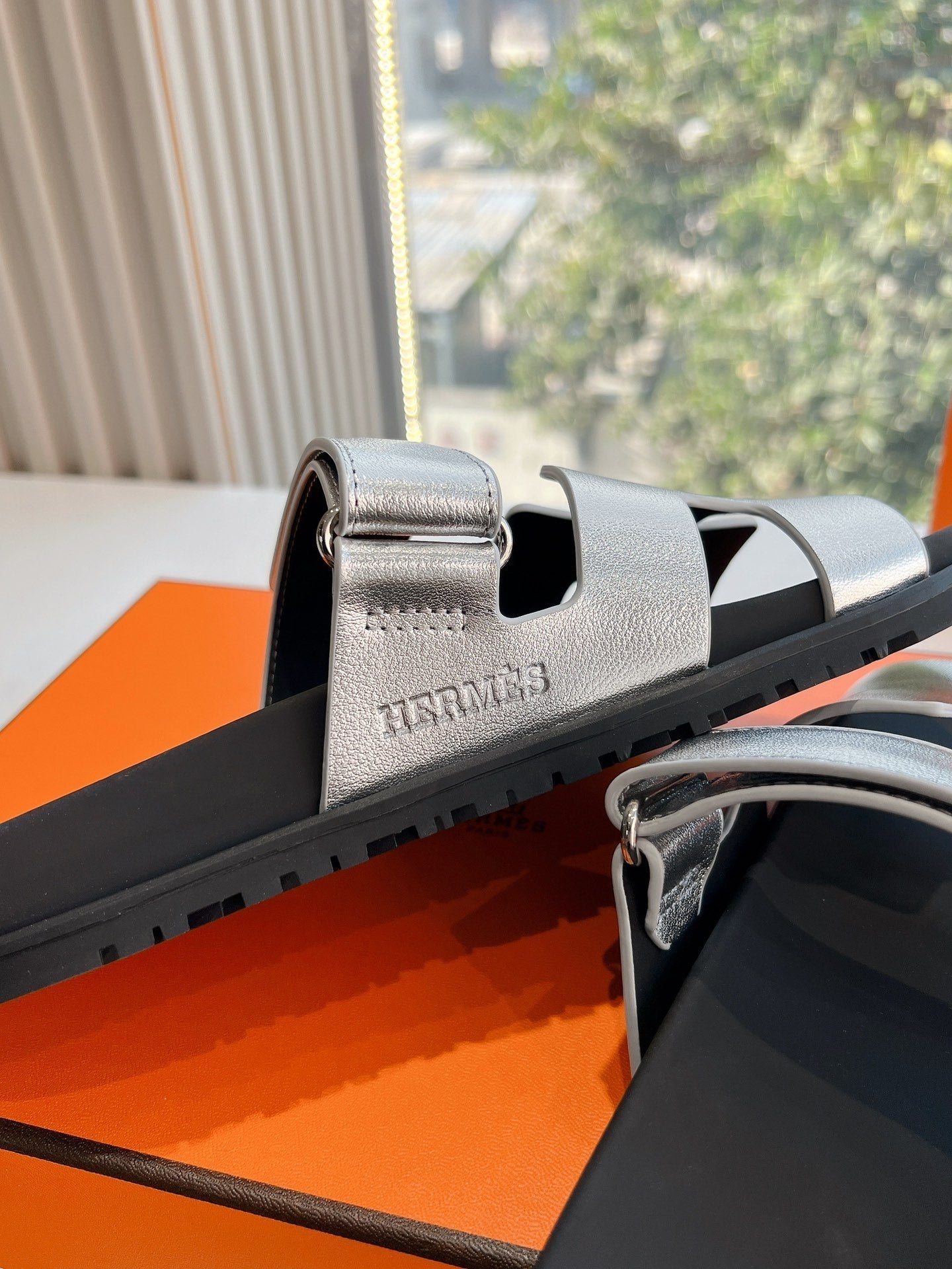 HM Chypre Sandal Silver Calfskin 202812