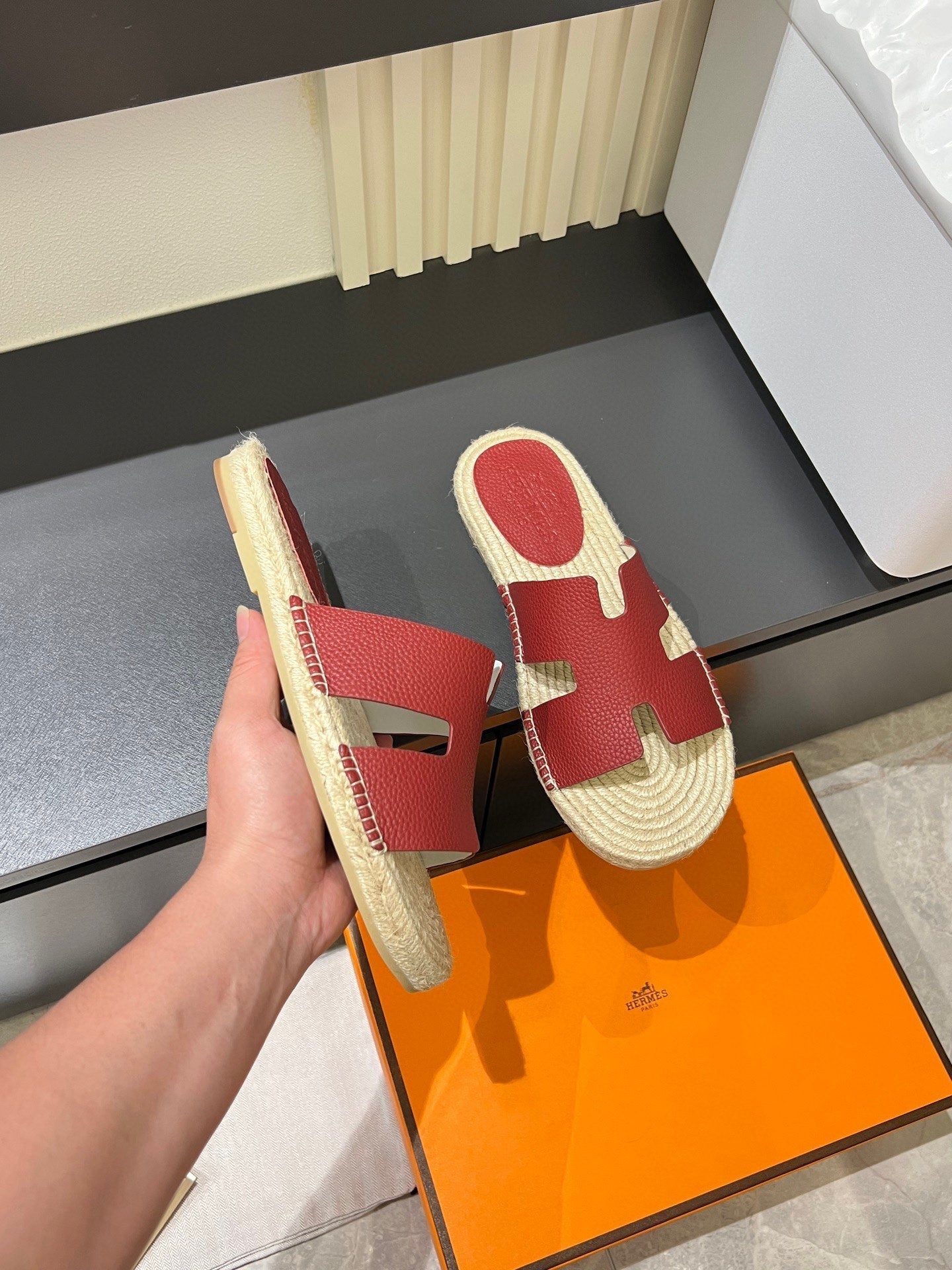 HM Men's Antigua Espadrille Slide Red Lambskin 590816